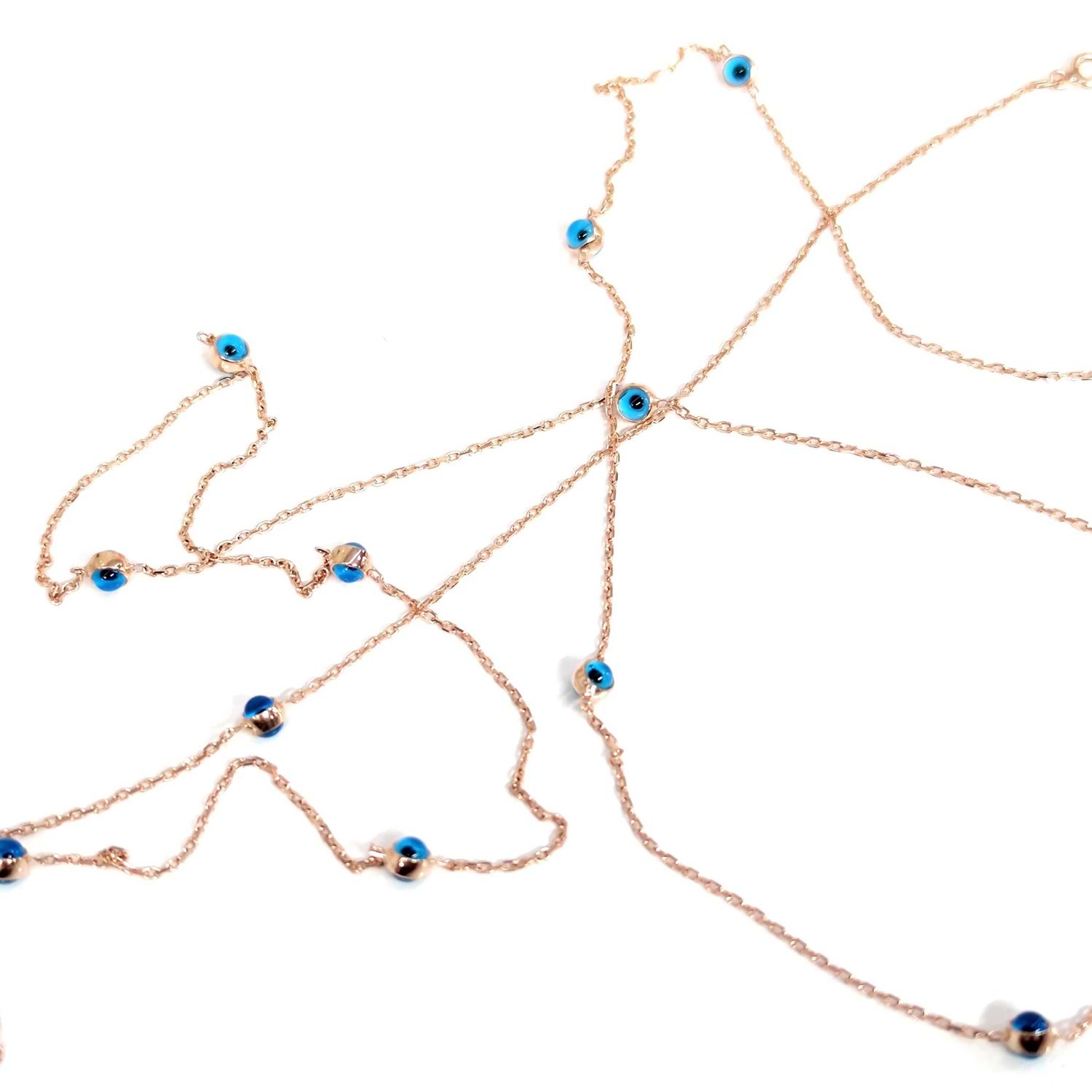 110 CM CAM GÖZ TİF GÜMÜŞ KOLYE - ROSE ALTIN KAPLAMA (BAKIR)