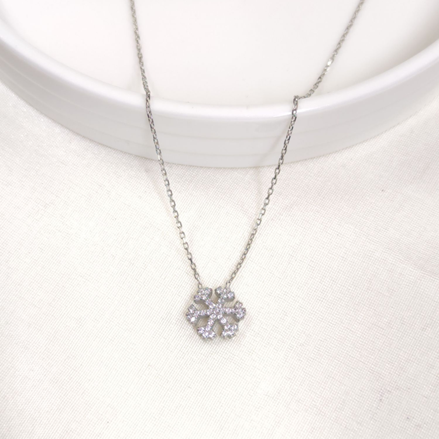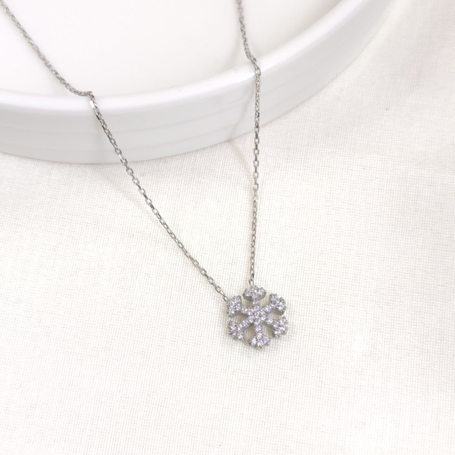 12 MM KAR TANESİ GÜMÜŞ KOLYE 45 CM - RODYUM BEYAZ