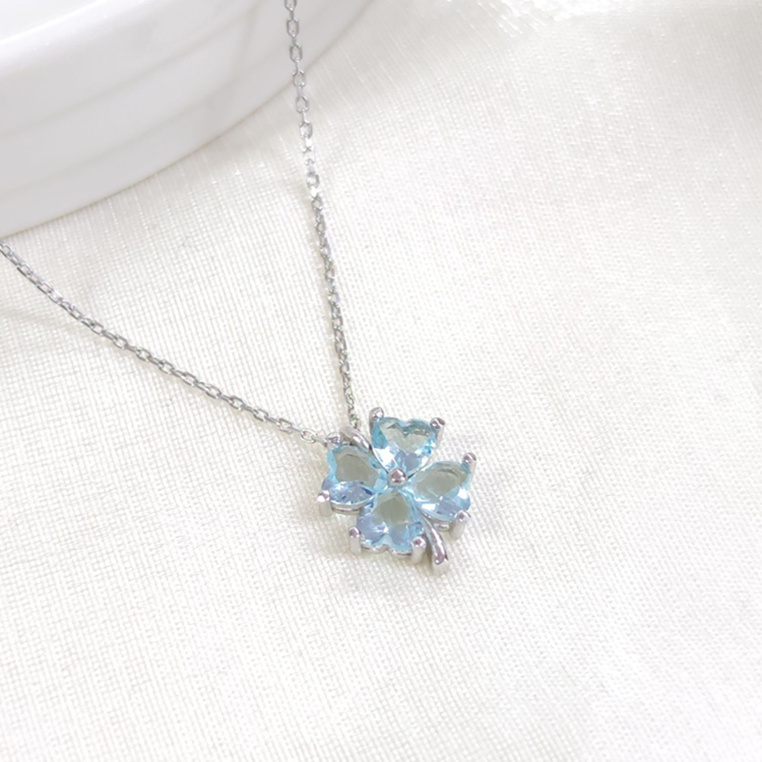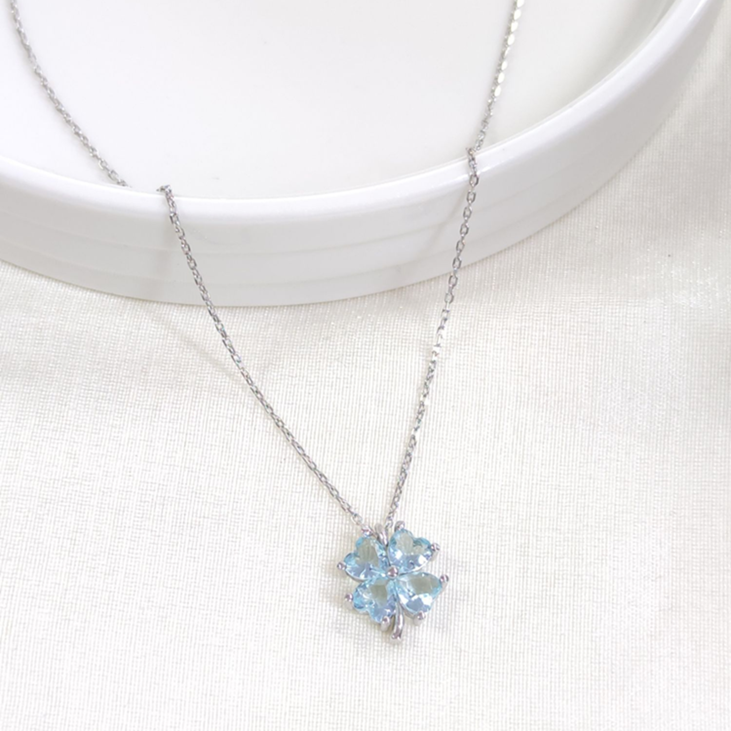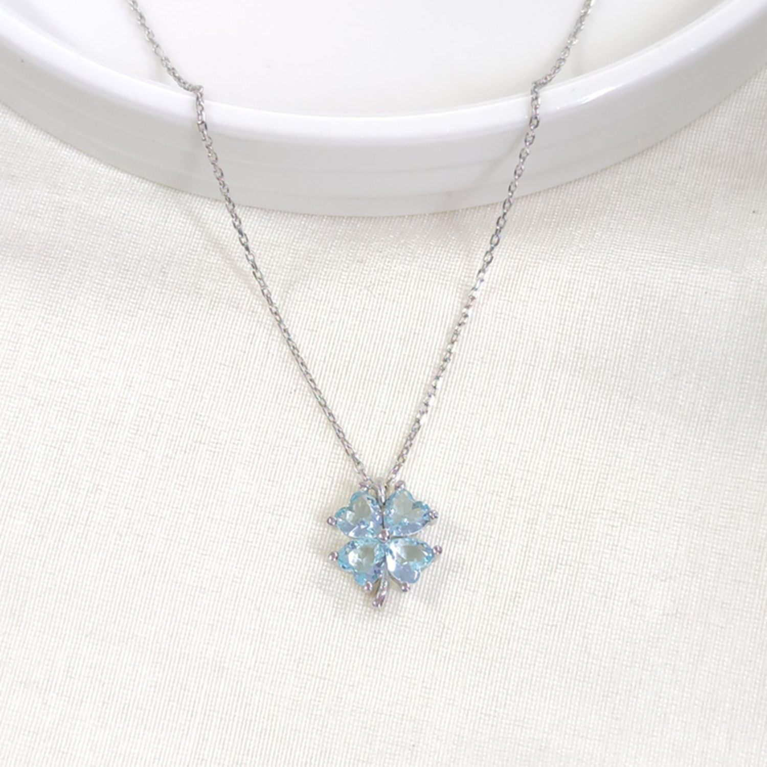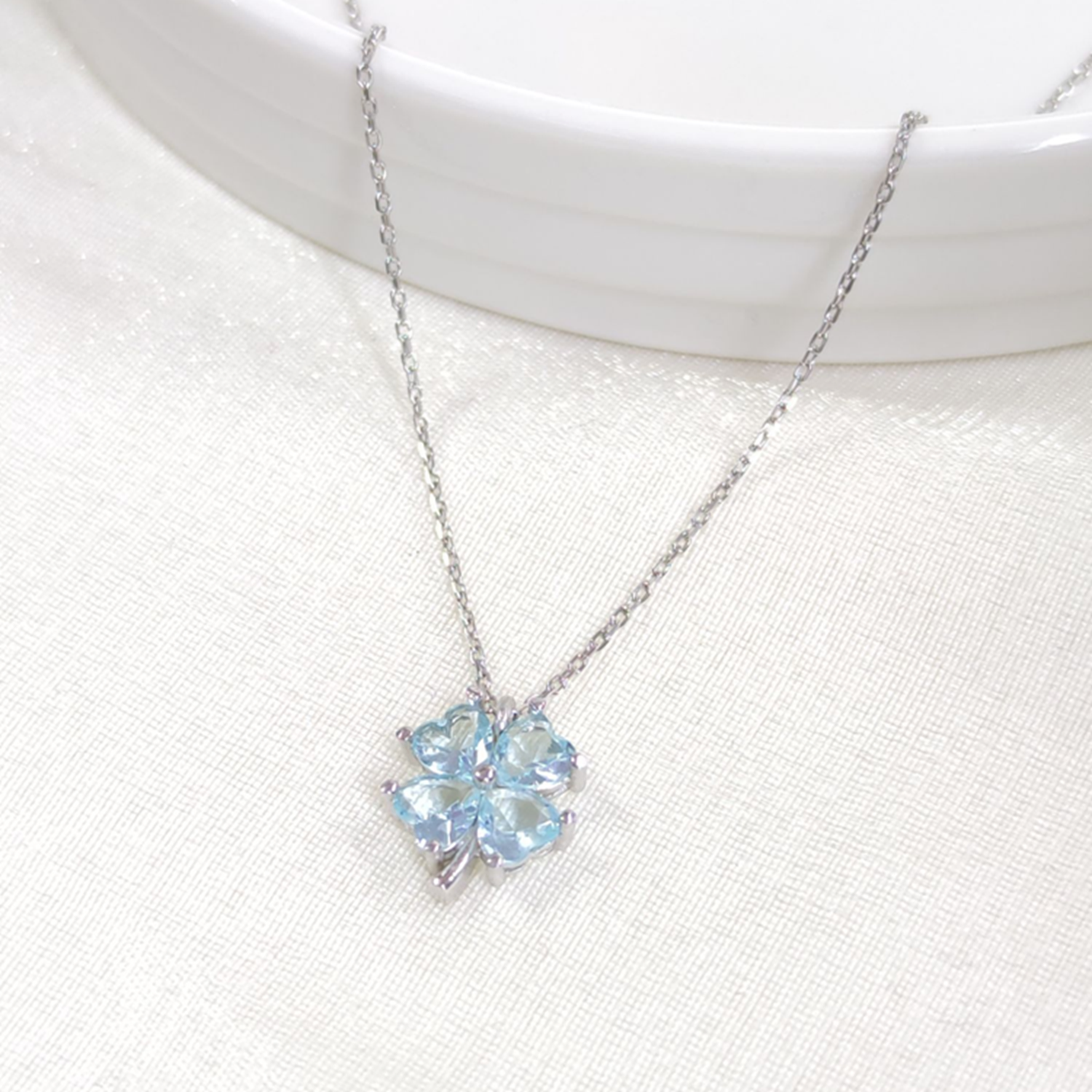 12 MM MAVİ YONCA GÜMÜŞ KOLYE 40+5 CM
