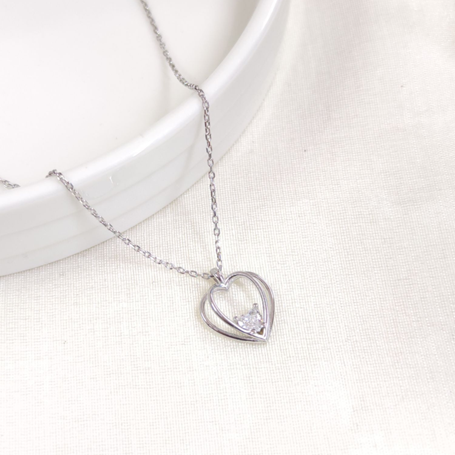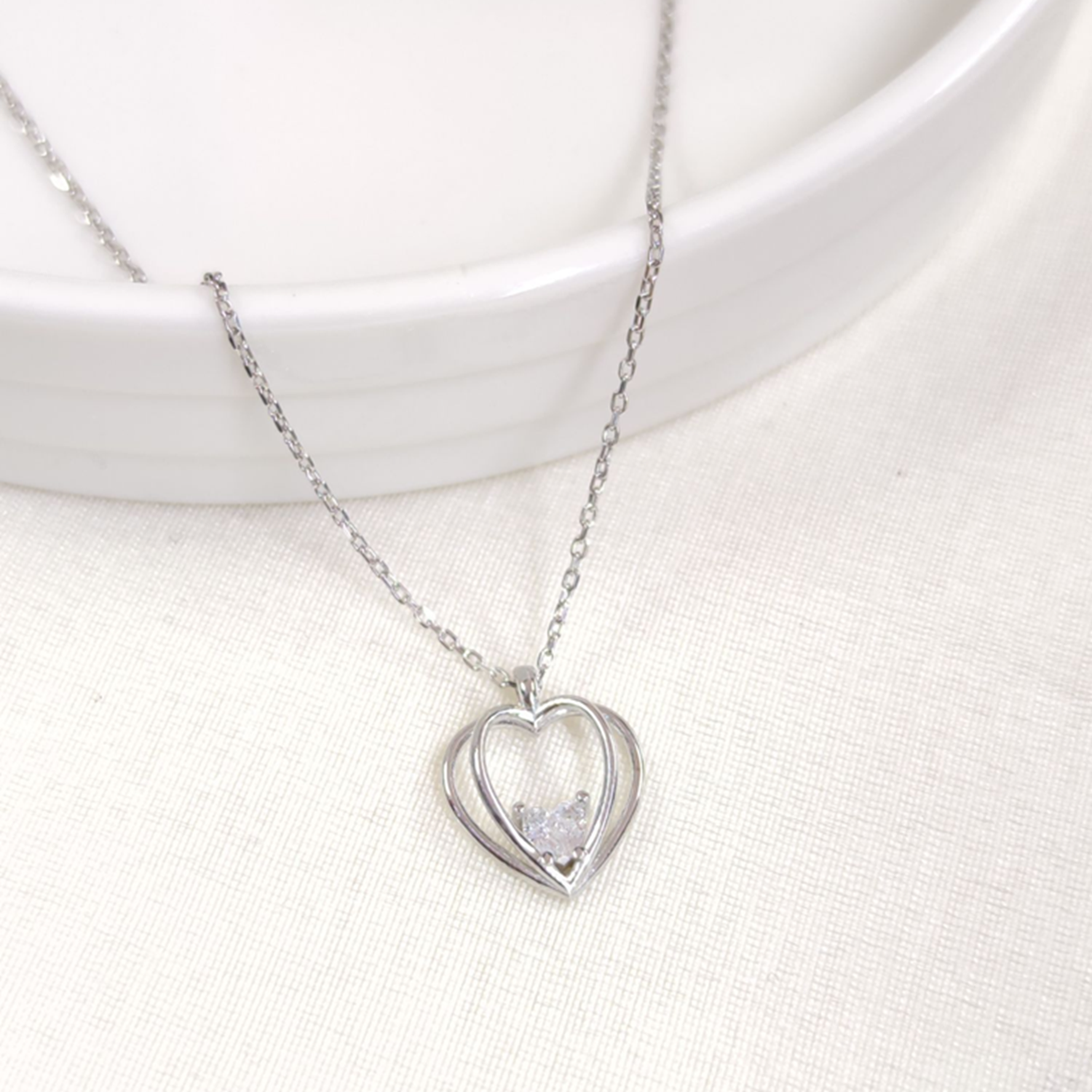 12 MM ZİRKON TAŞLI KALP GÜMÜŞ KOLYE 40+5 CM - RODYUM BEYAZ
