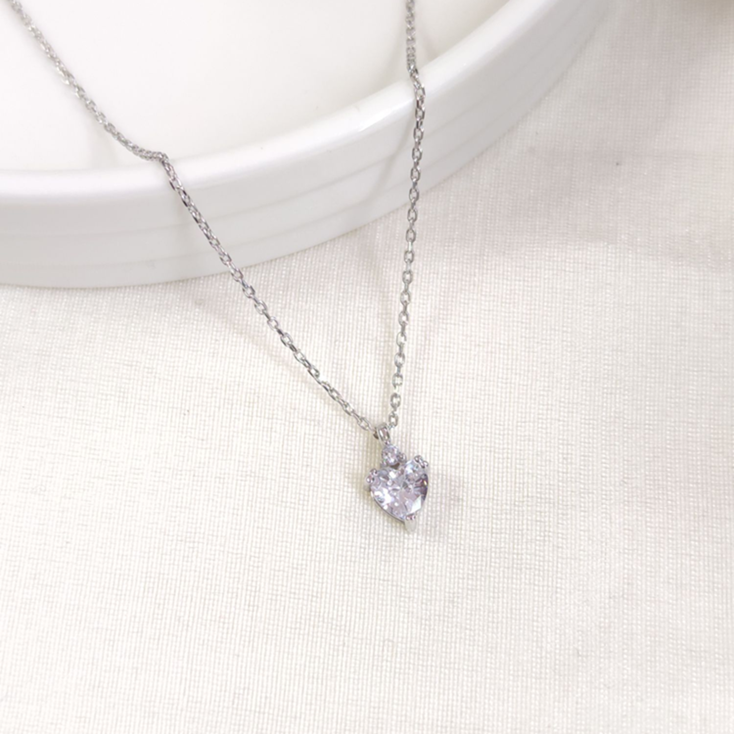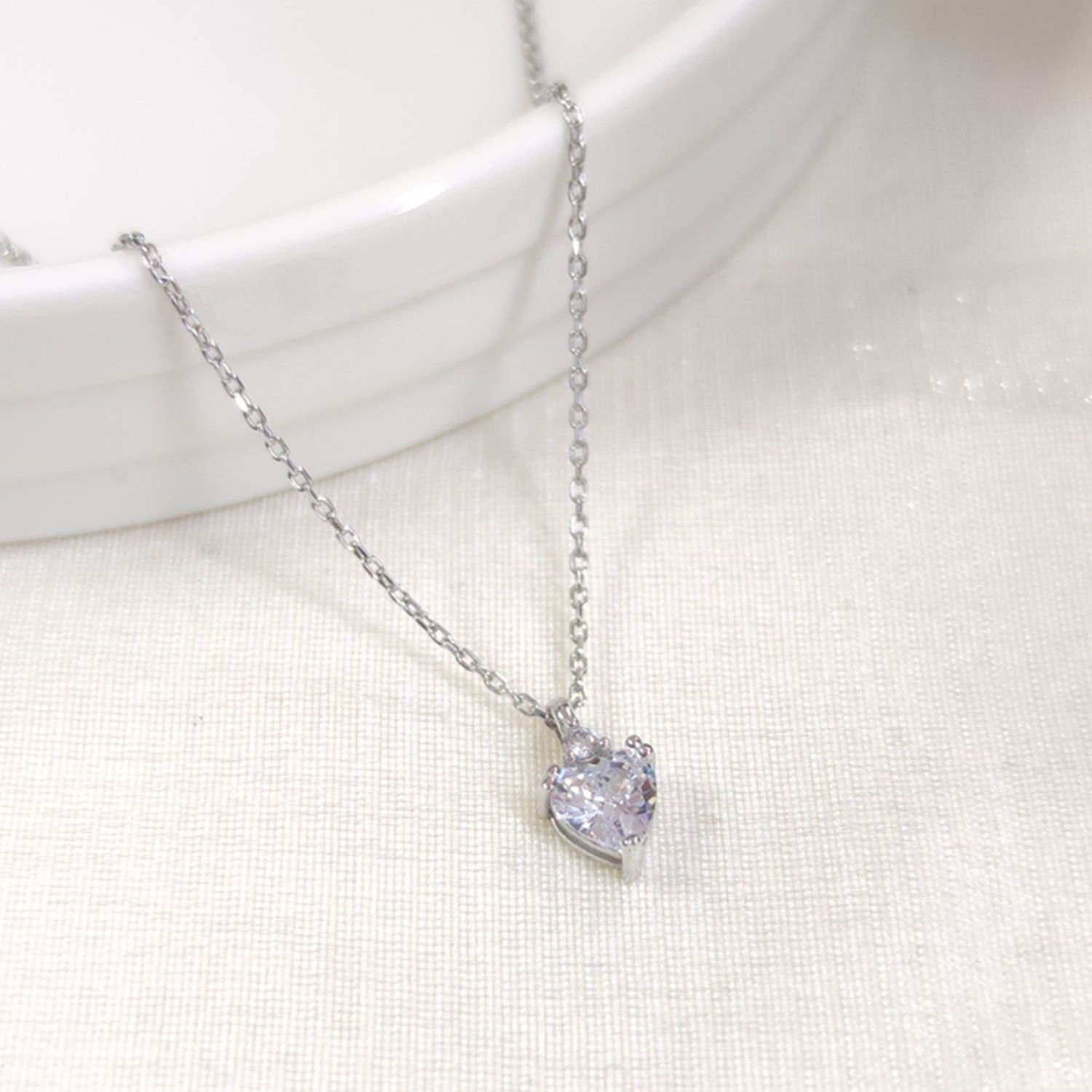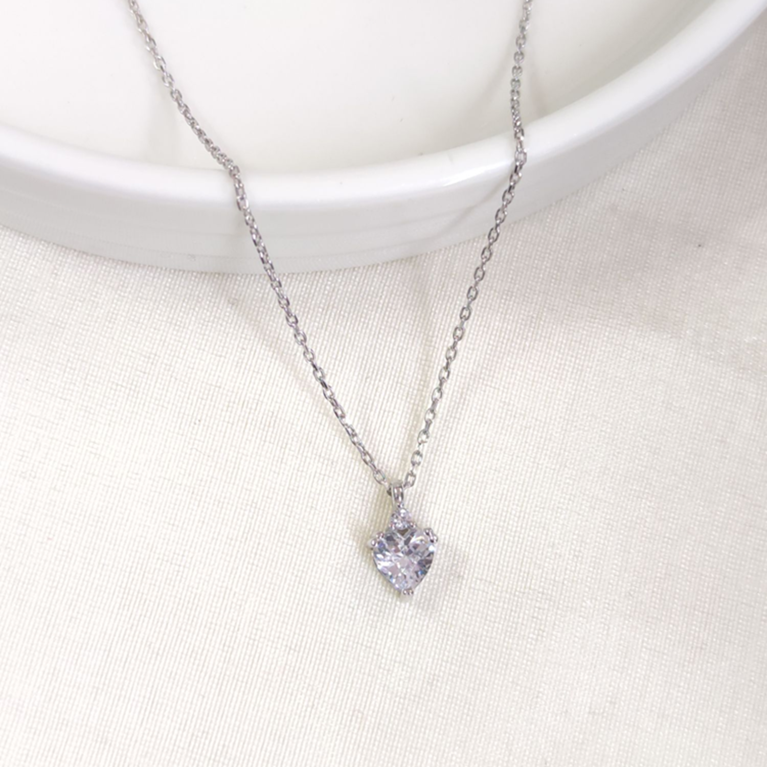 7 MM TEK TAŞ KALP GÜMÜŞ KOLYE 40+5 CM