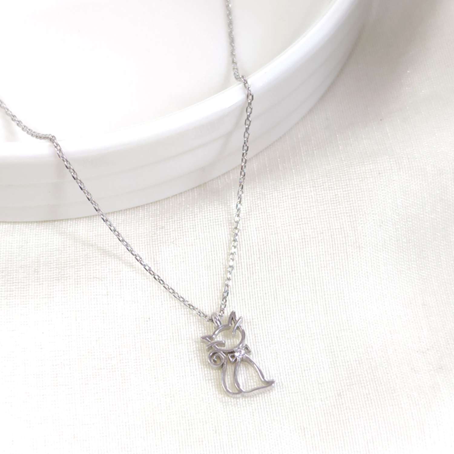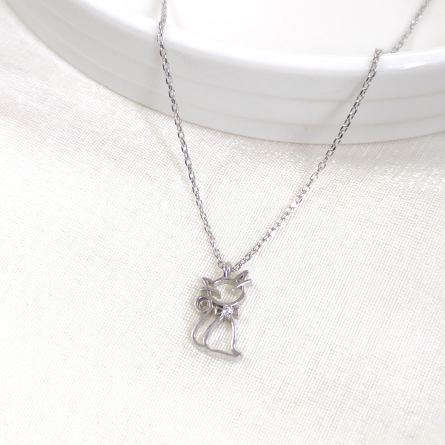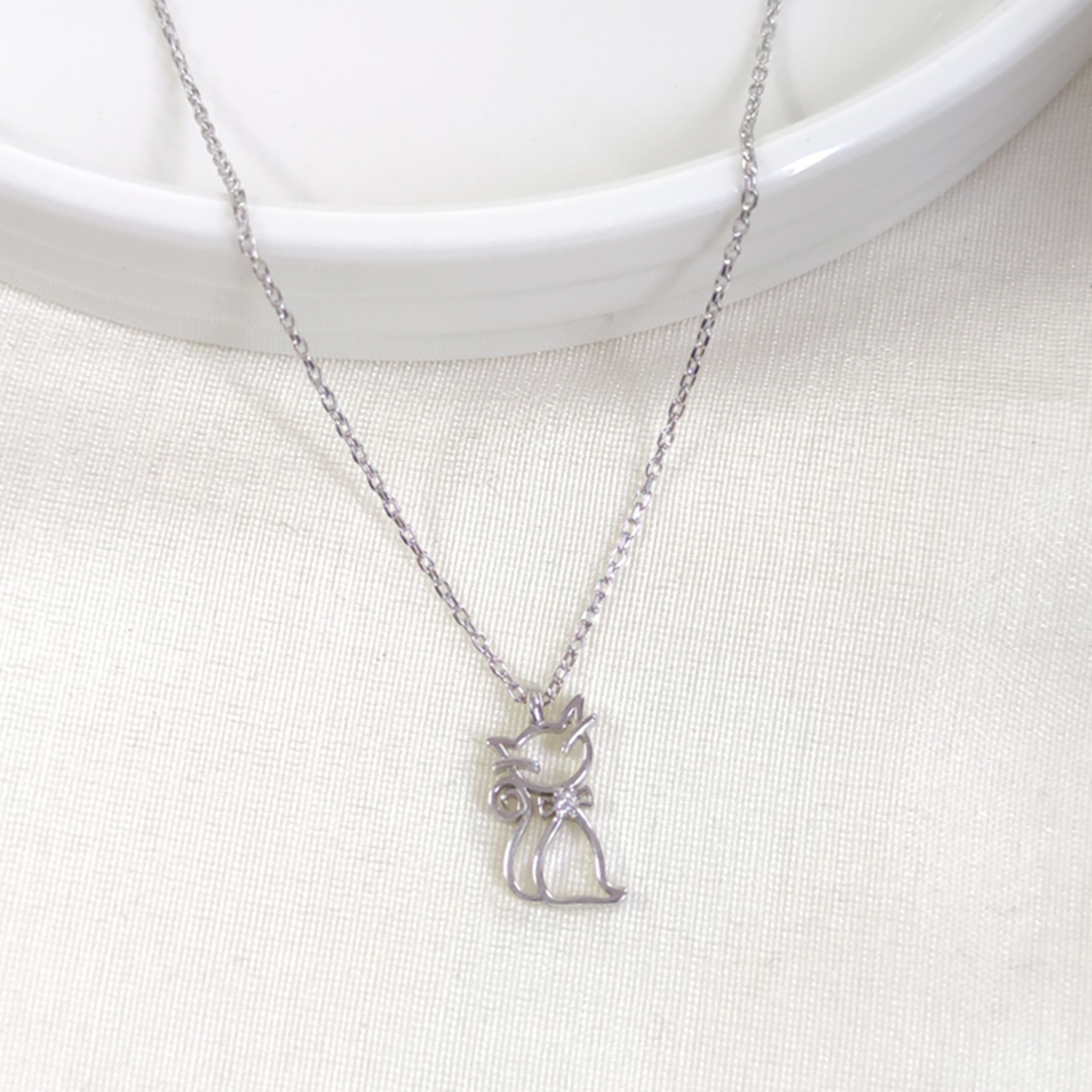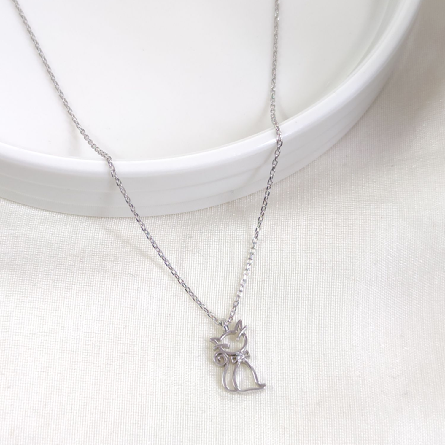7X15 MM KEDİ GÜMÜŞ KOLYE 40+5 CM - RODYUM BEYAZ