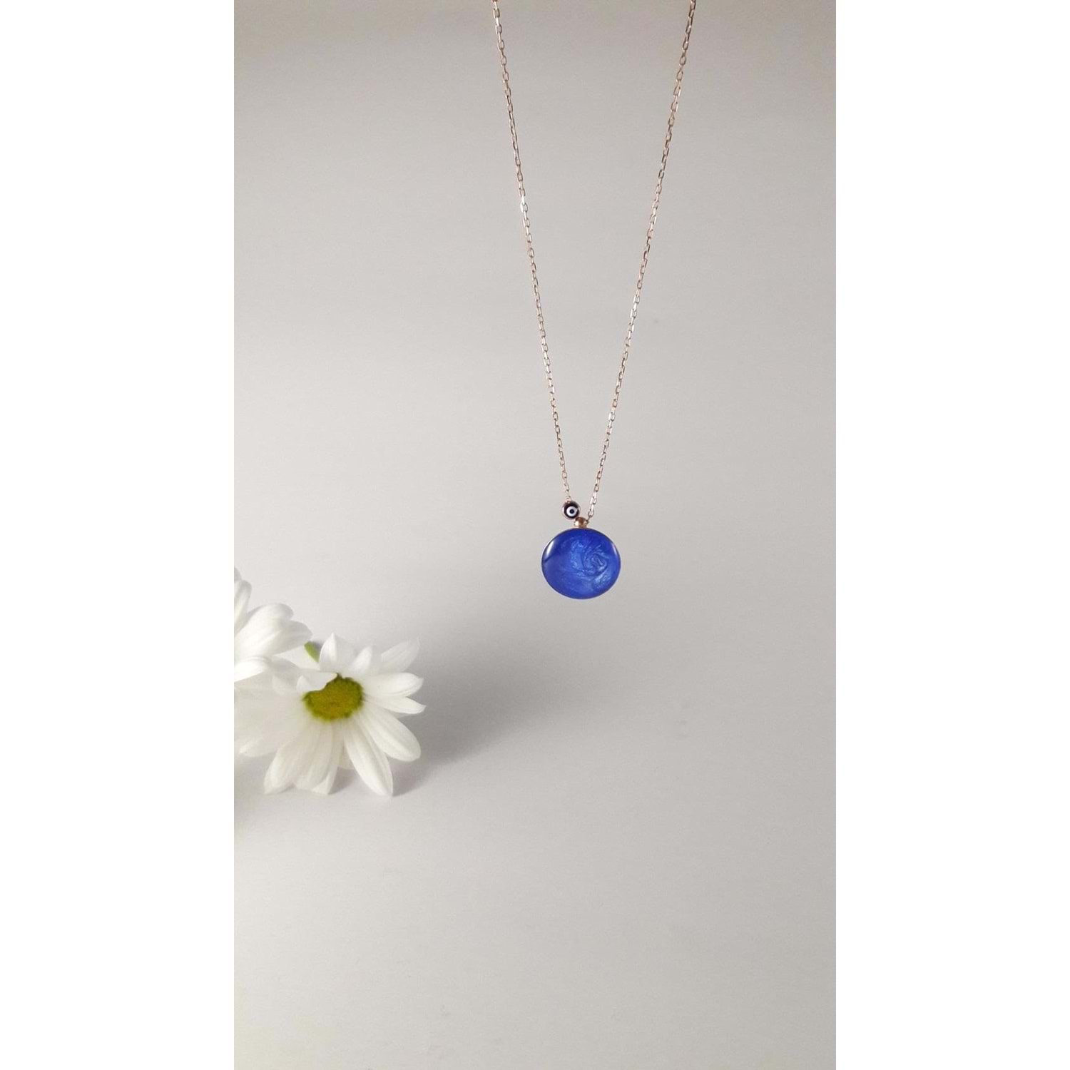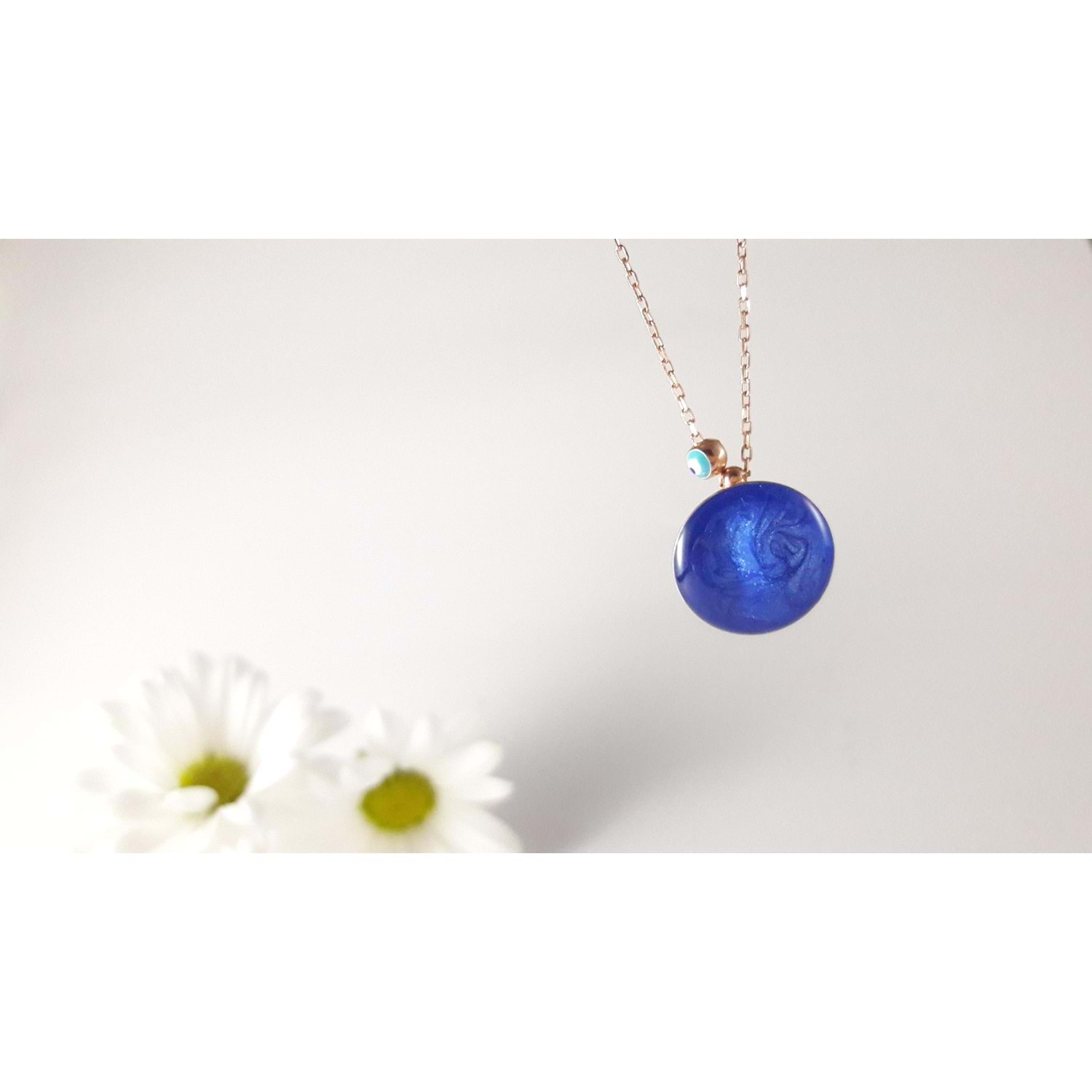 925 ayar gümüş içi mine dolgulu arkası dualı rose kolye