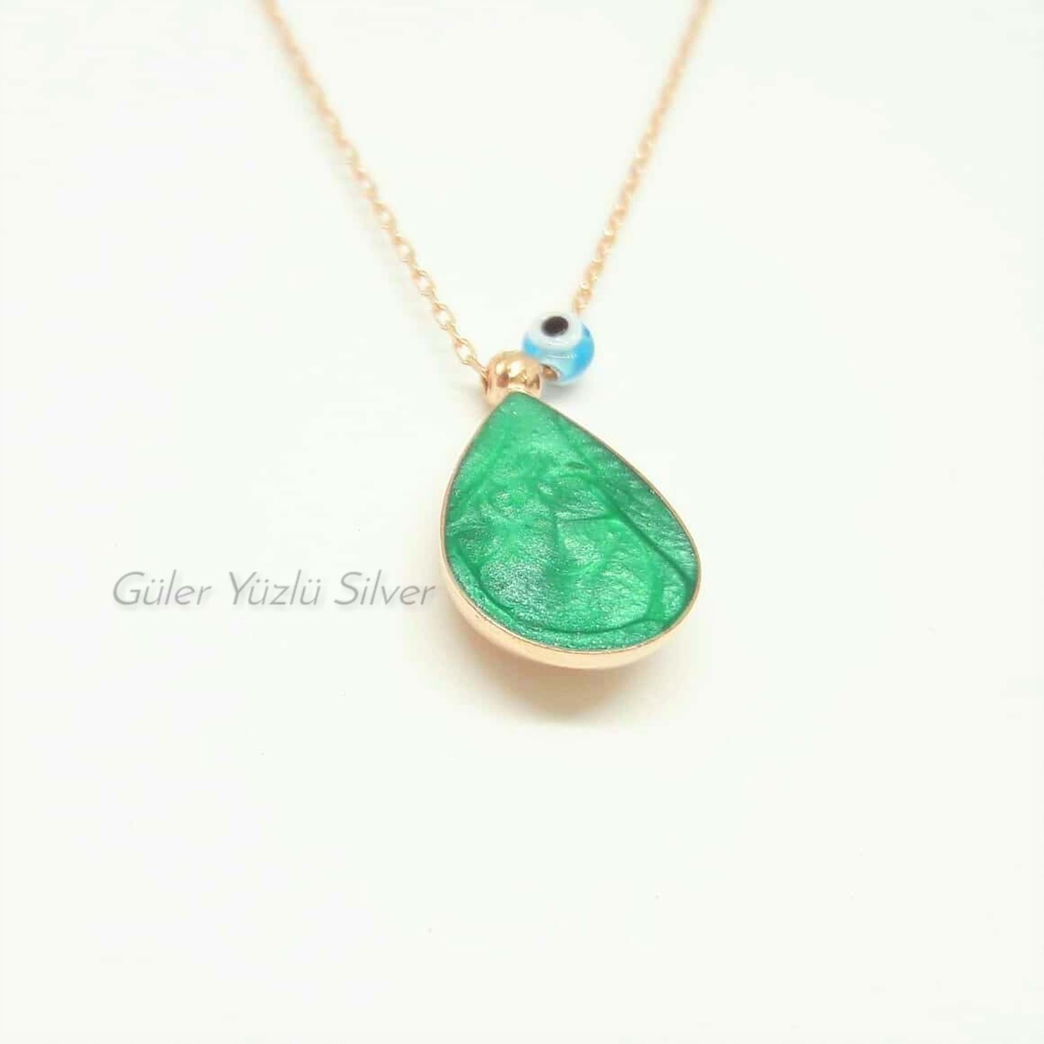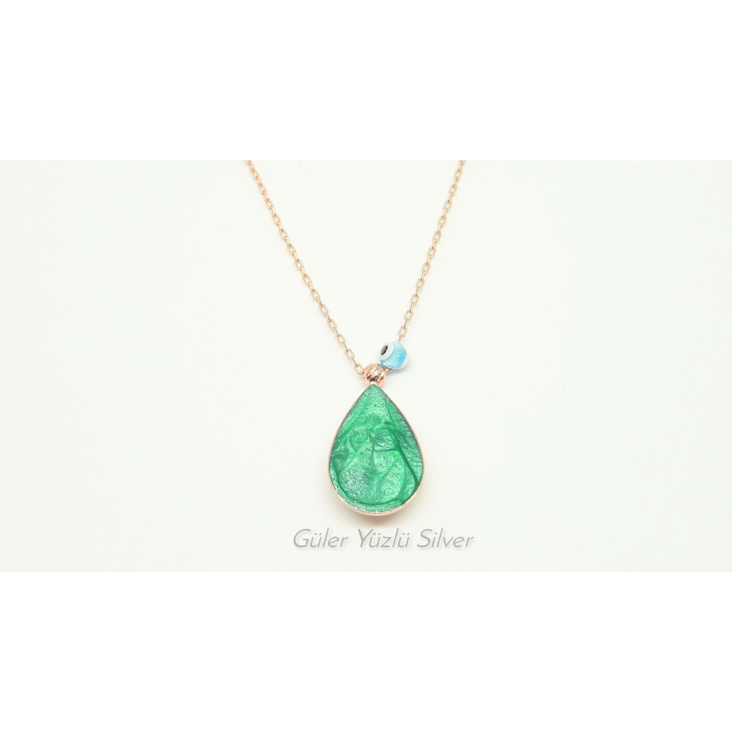 ARKASI DUALI SU YEŞİLİ MİNELİ DAMLA GÜMÜŞ KOLYE