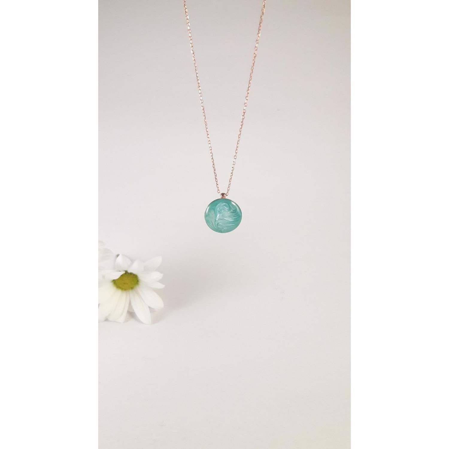 925 ayar gümüş içi mine dolgulu arkası dualı rose kolye