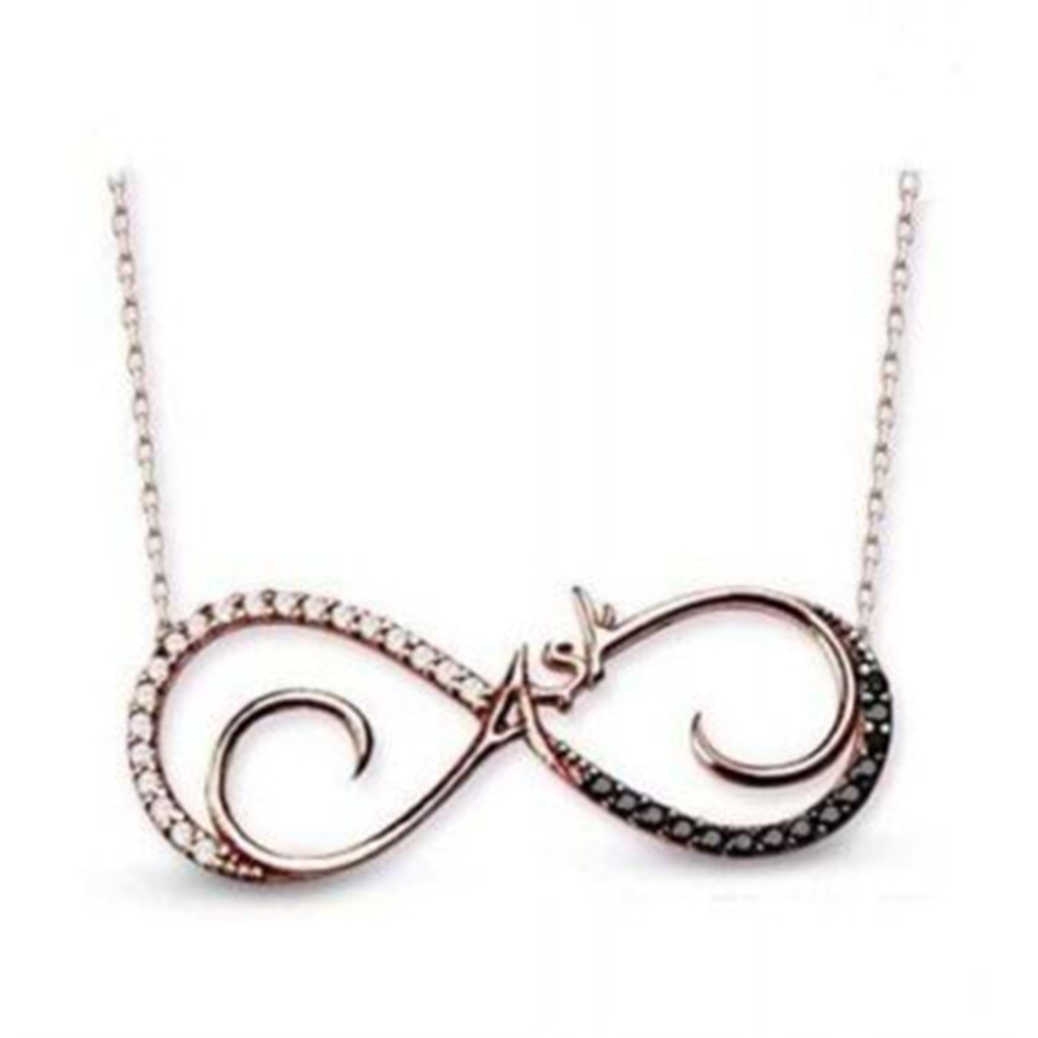 925 ayar gümüş rose zirkon ve siyah taşlı sonsuz AŞK kolye