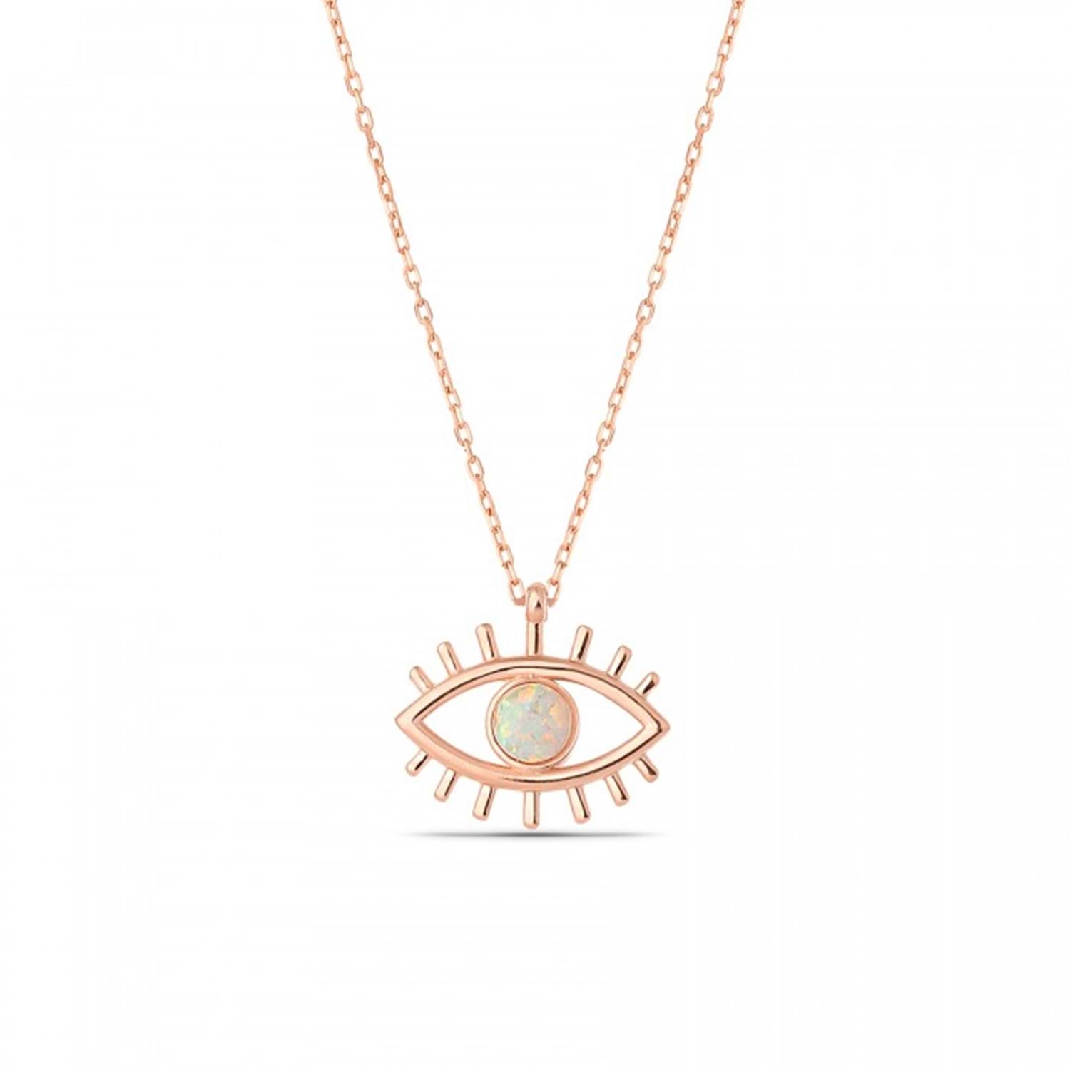 925 ayar gümüş orjınal opal taş kullanılmıştır göz figür boyut : 1,70 cm zincir uzunluğu 40+ 5 cm ek uzatma halkası mevcuttur.