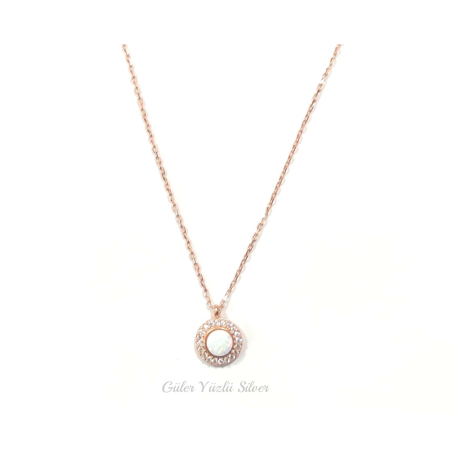 BEYAZ OPAL KENARLARI TAŞLI YUVARLAK MİNİ GÜMÜŞ KOLYE