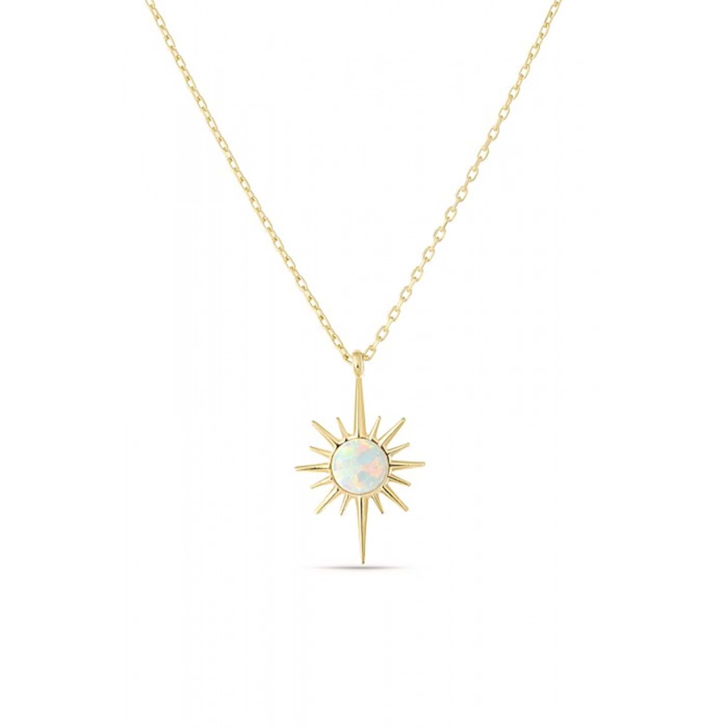 BEYAZ OPAL KUTUP YILDIZ GÜMÜŞ KOLYE - ALTIN SARI