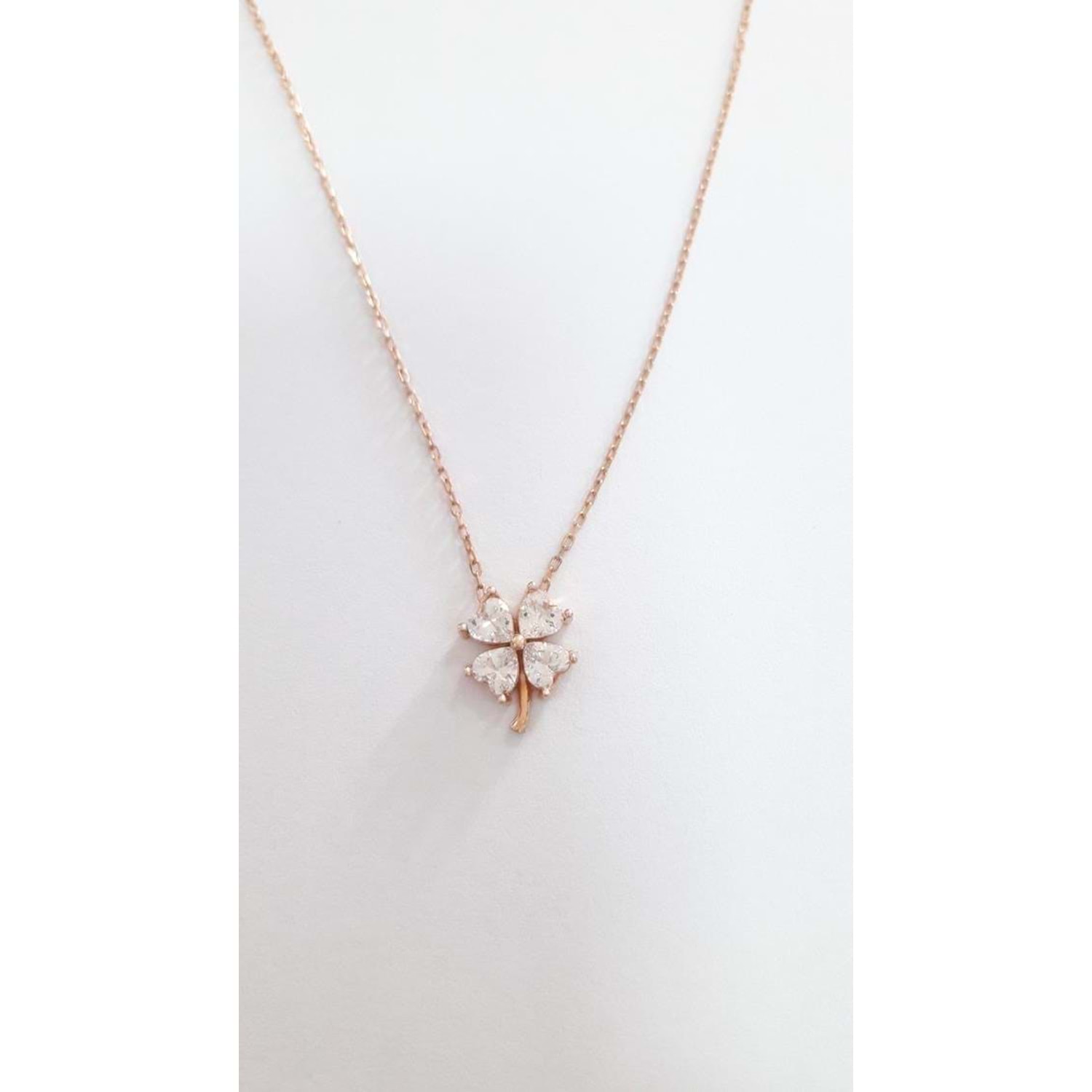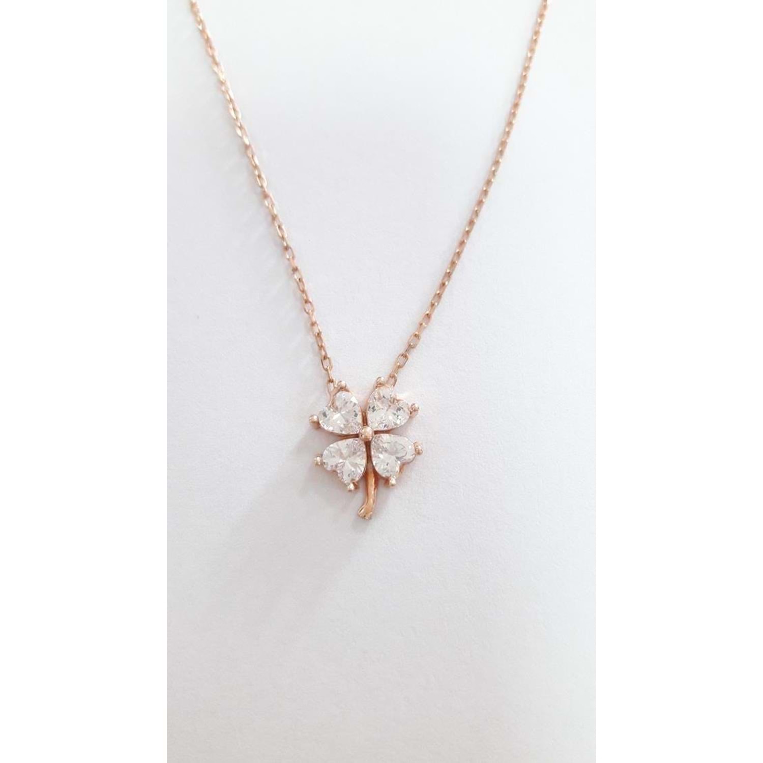 925 ayar gümüş beyaz taşlı yonca rose gümüş kolye