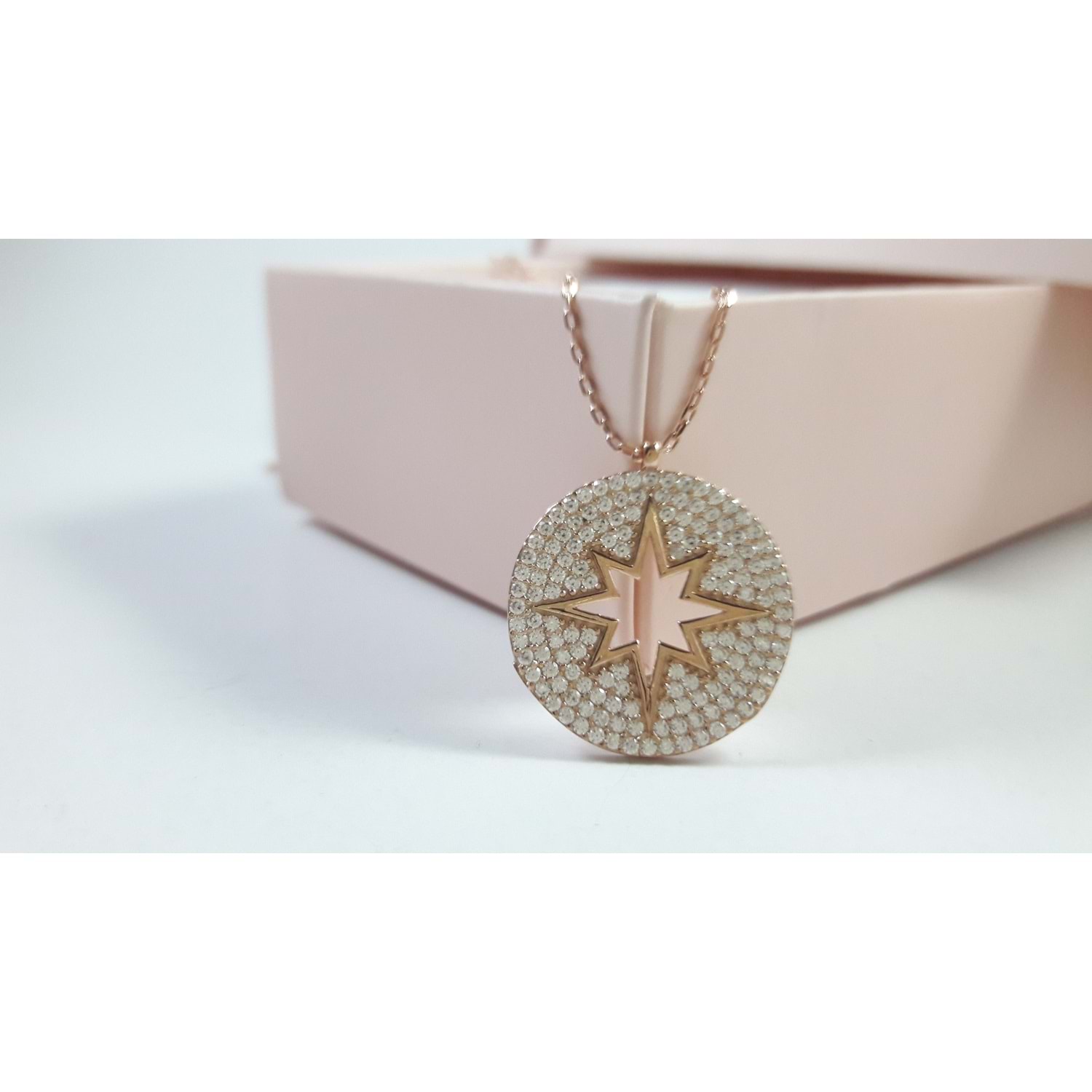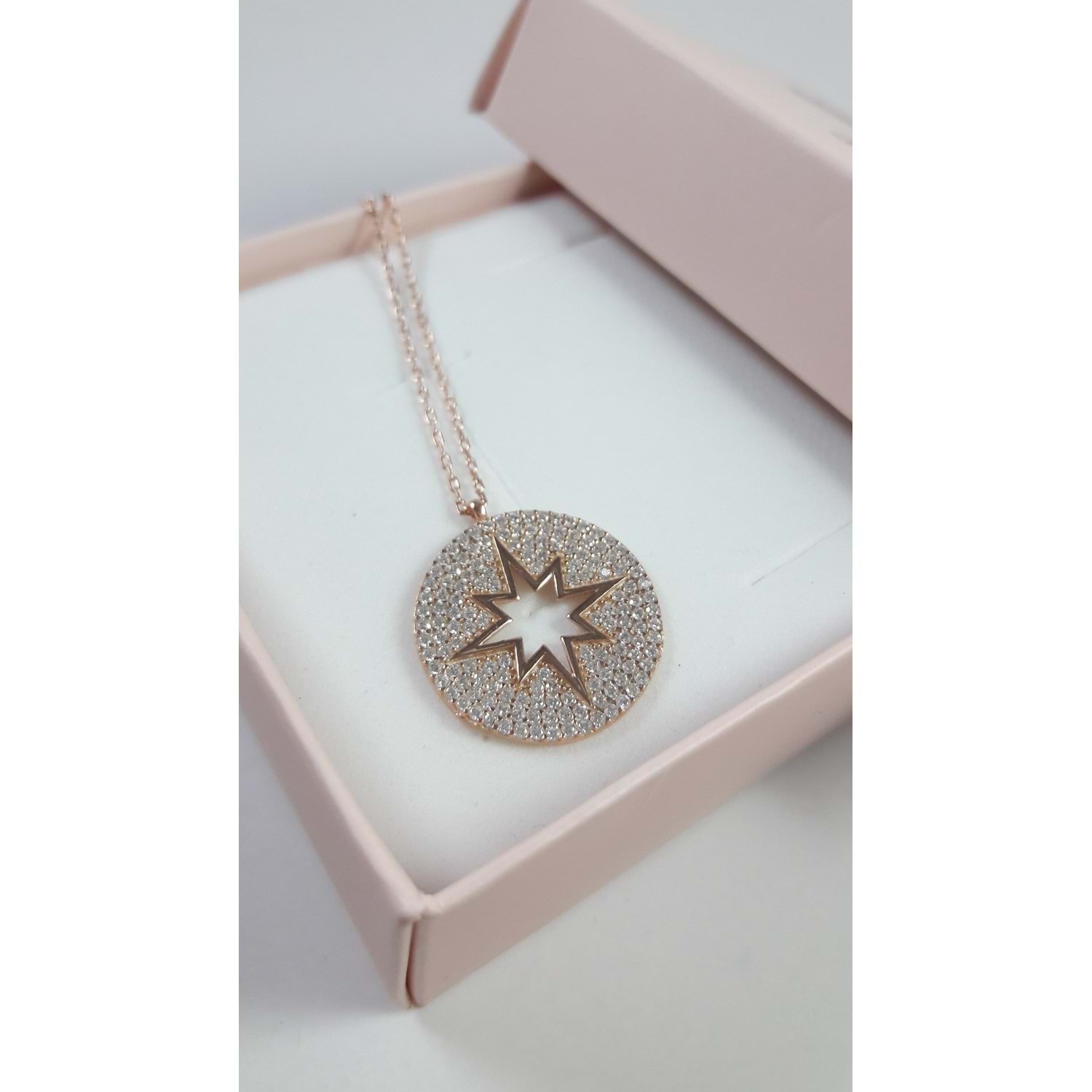 BEYAZ TAŞLI YUVARLAK KUTUP YILDIZI GÜMÜŞ KOLYE