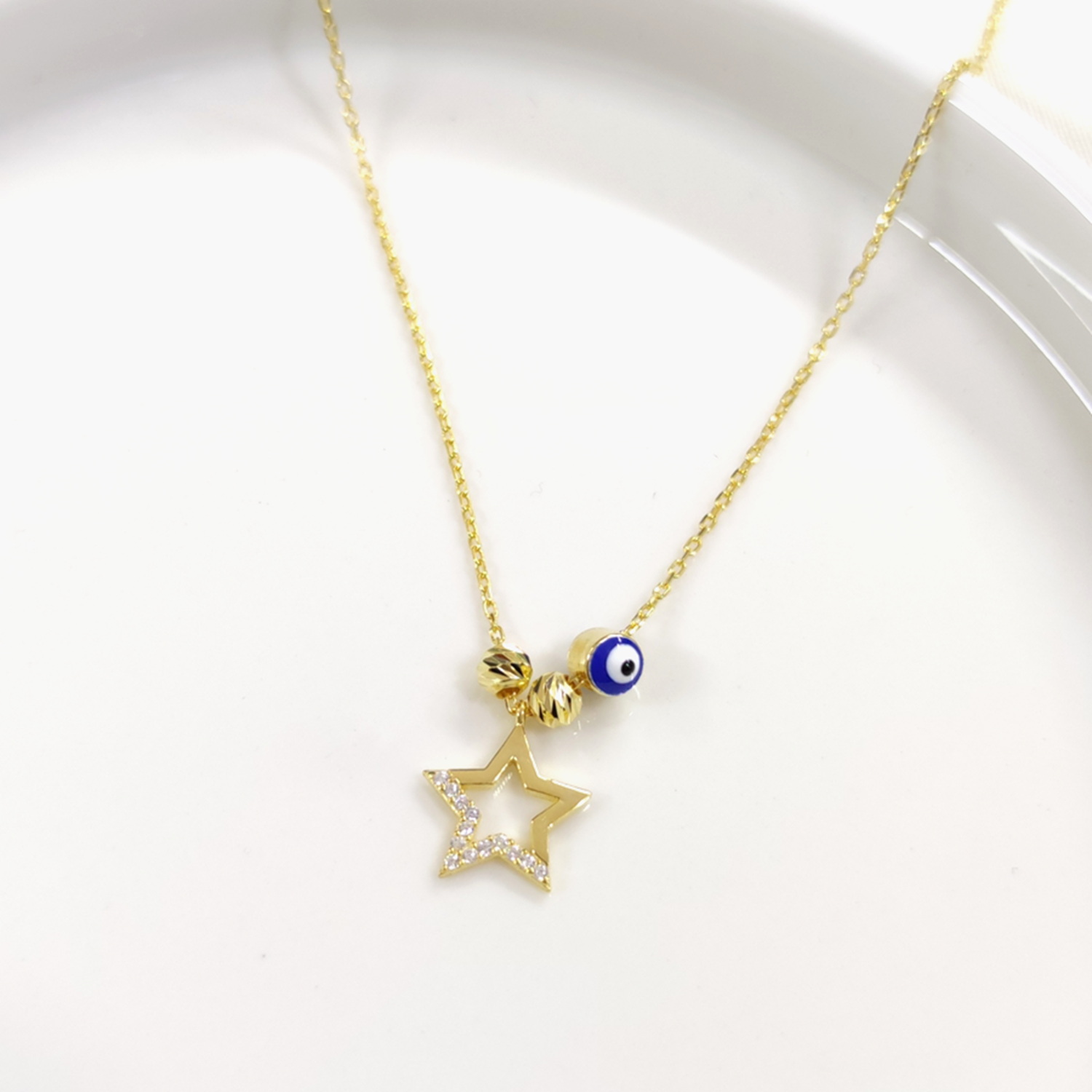 BONCUKLU DORİCA YILDIZ GÜMÜŞ KOLYE - ALTIN SARI