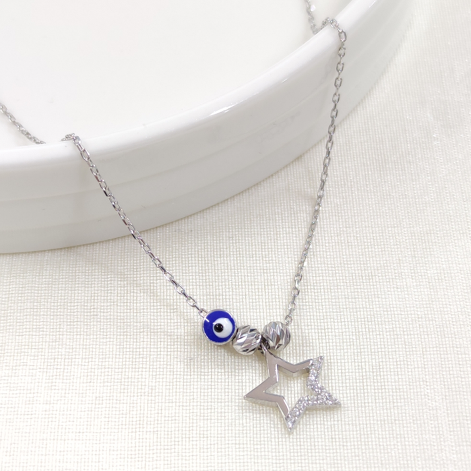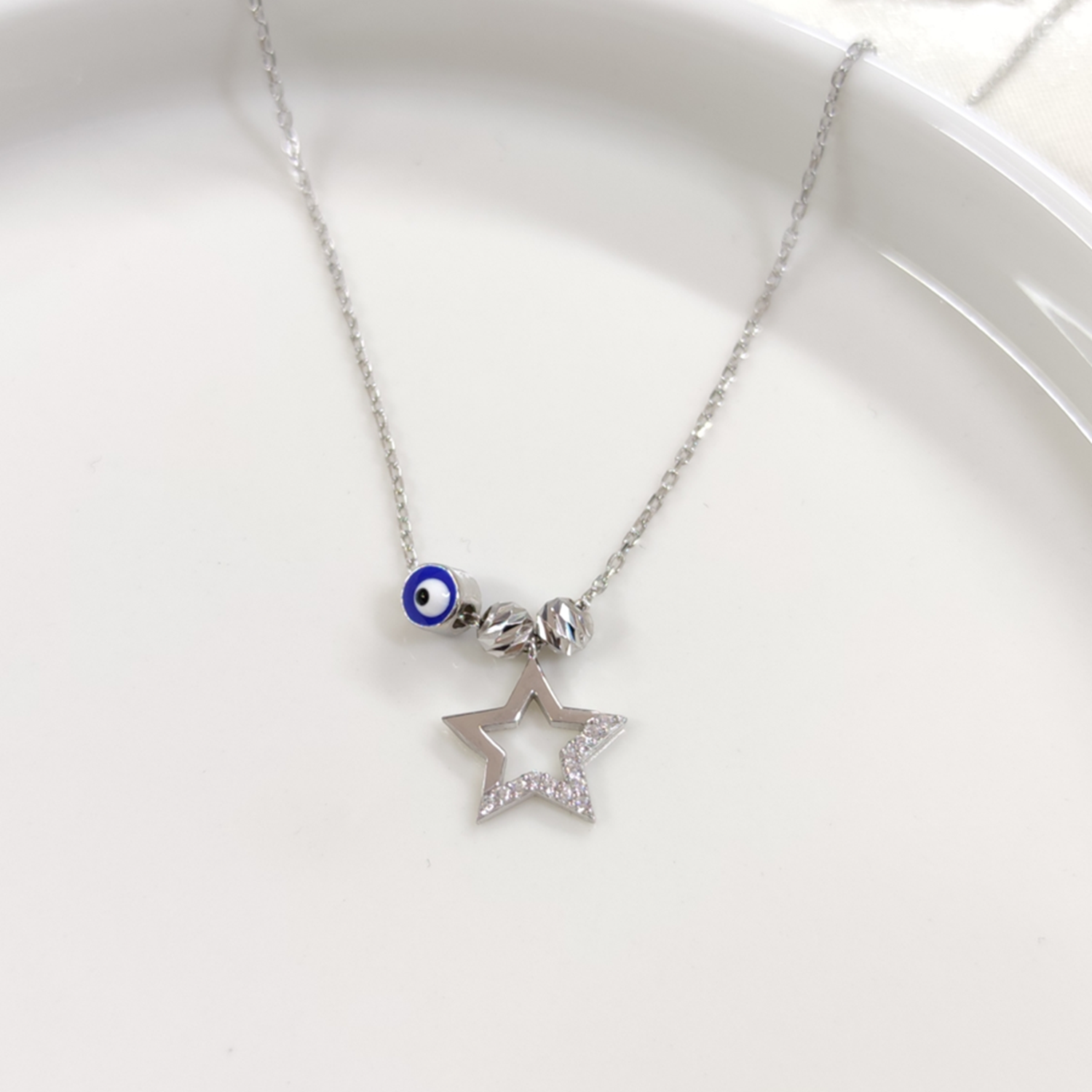 BONCUKLU DORİCA YILDIZ GÜMÜŞ KOLYE - RODYUM BEYAZ