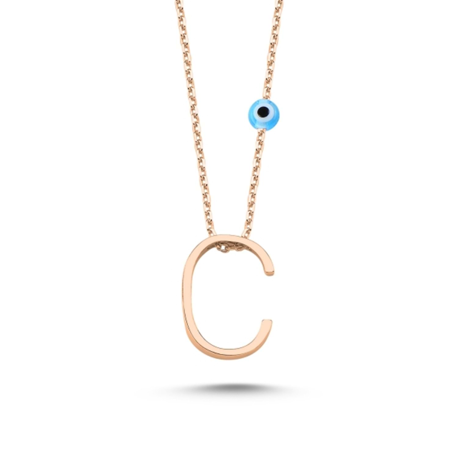 C HARF GÜMÜŞ KOLYE - ROSE ALTIN KAPLAMA (BAKIR)