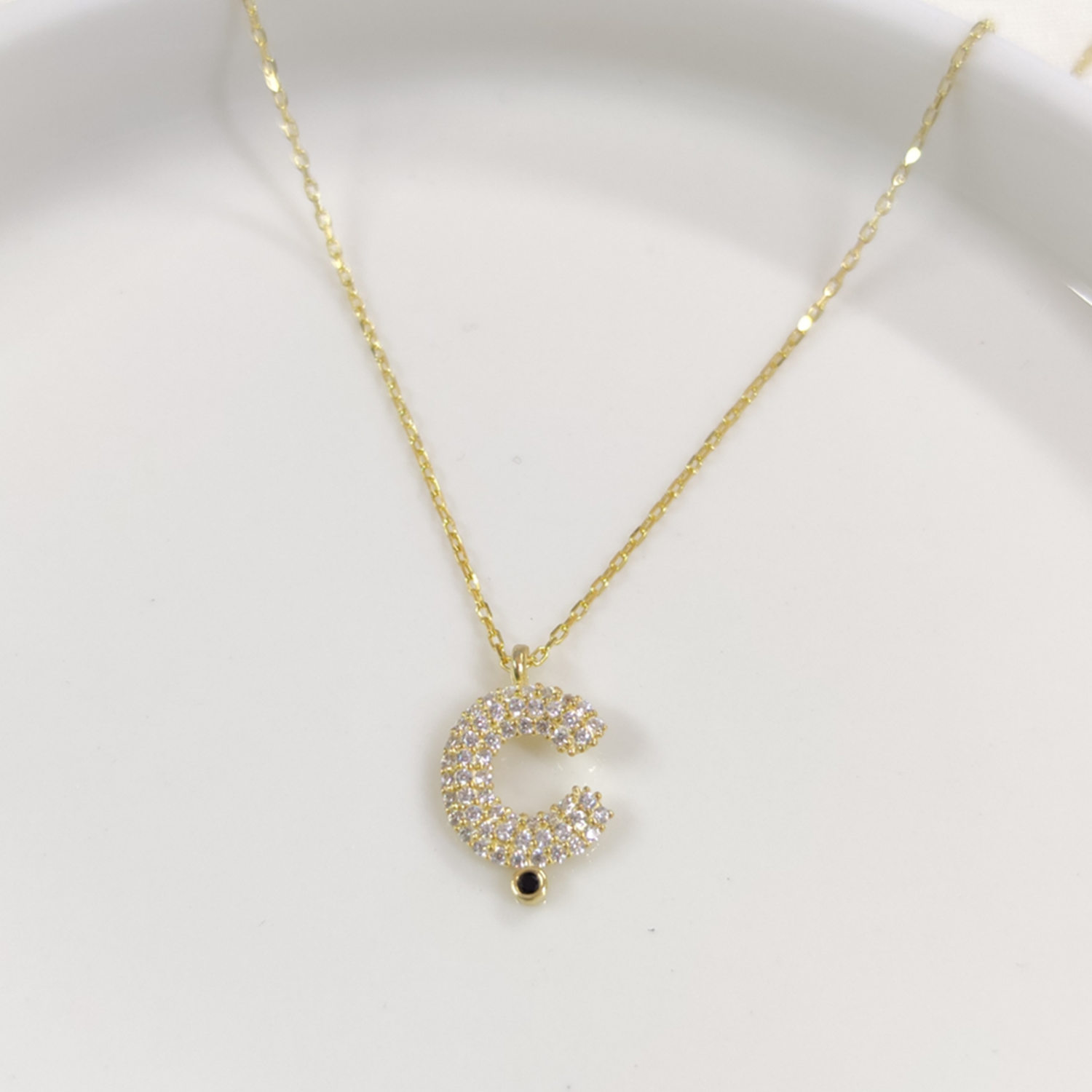 Ç TAŞLI GÜMÜŞ HARF KOLYE - ALTIN SARI