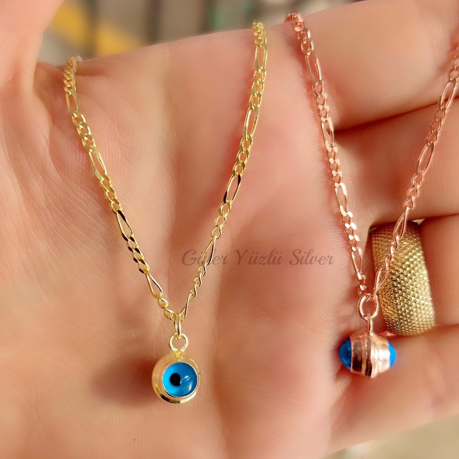 CAM GÖZ NAZAR GÜMÜŞ KOLYE BÜYÜK - ALTIN KAPLAMA (SARI)