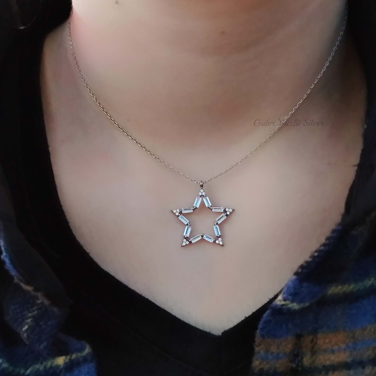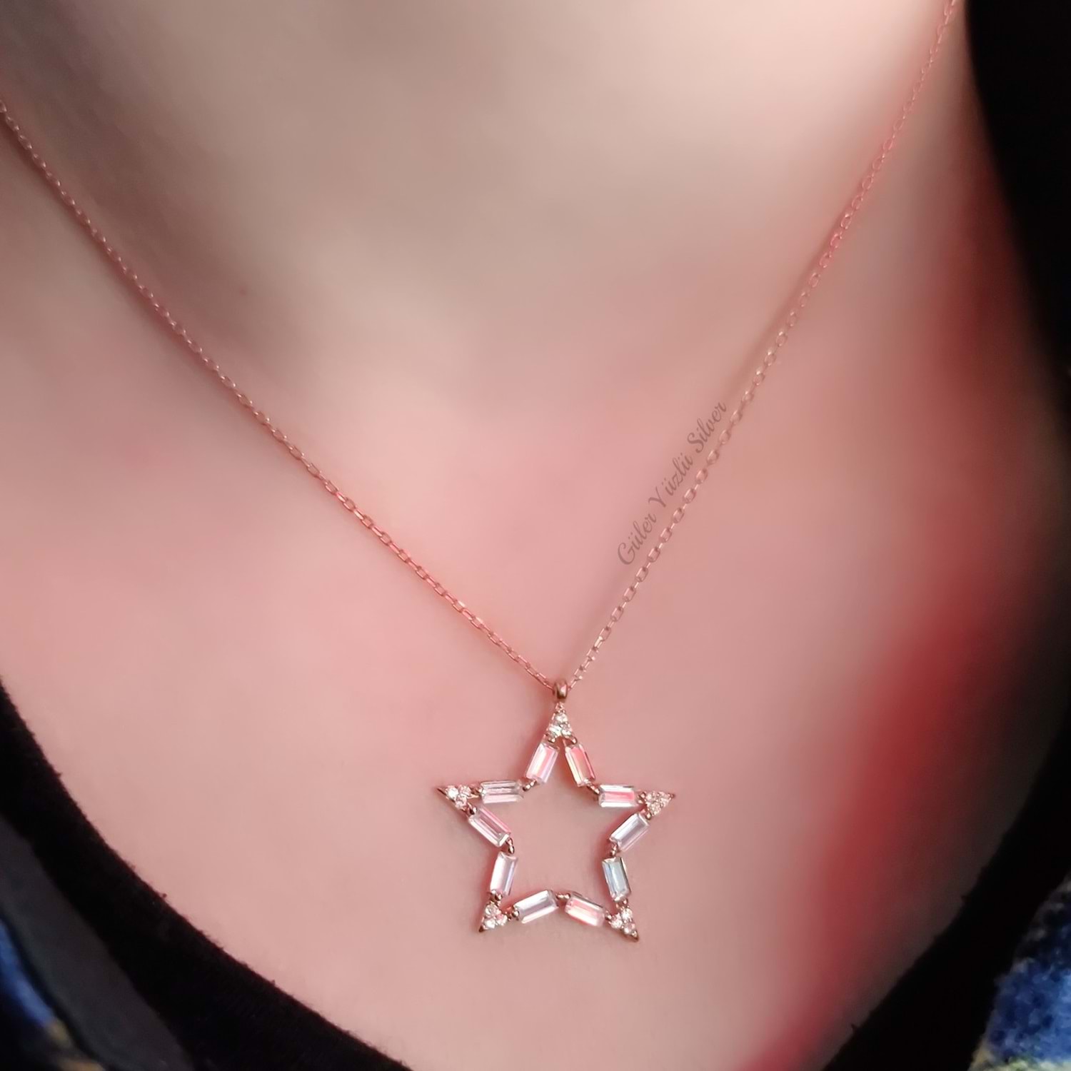 İÇİ BOŞ BAGET TAŞ YILDIZ GÜMÜŞ KOLYE