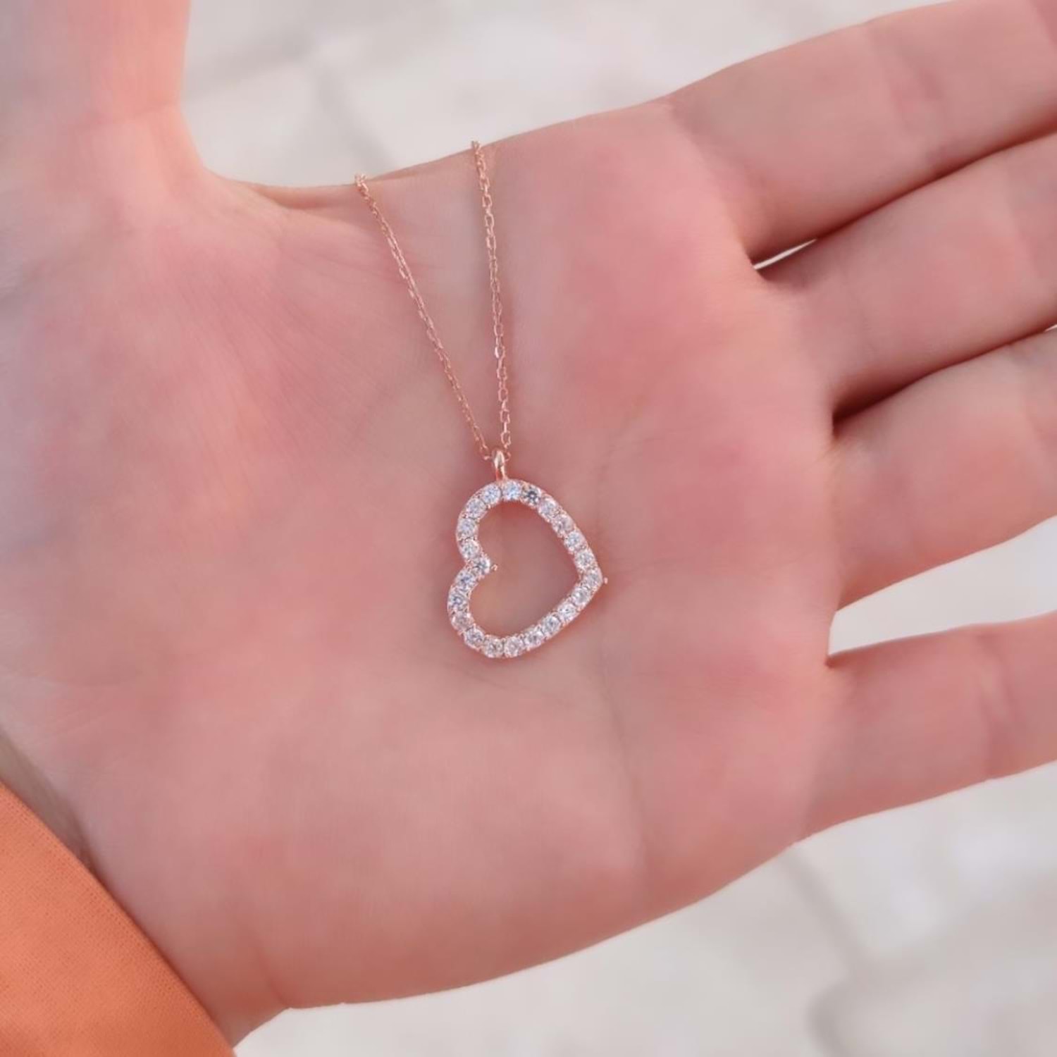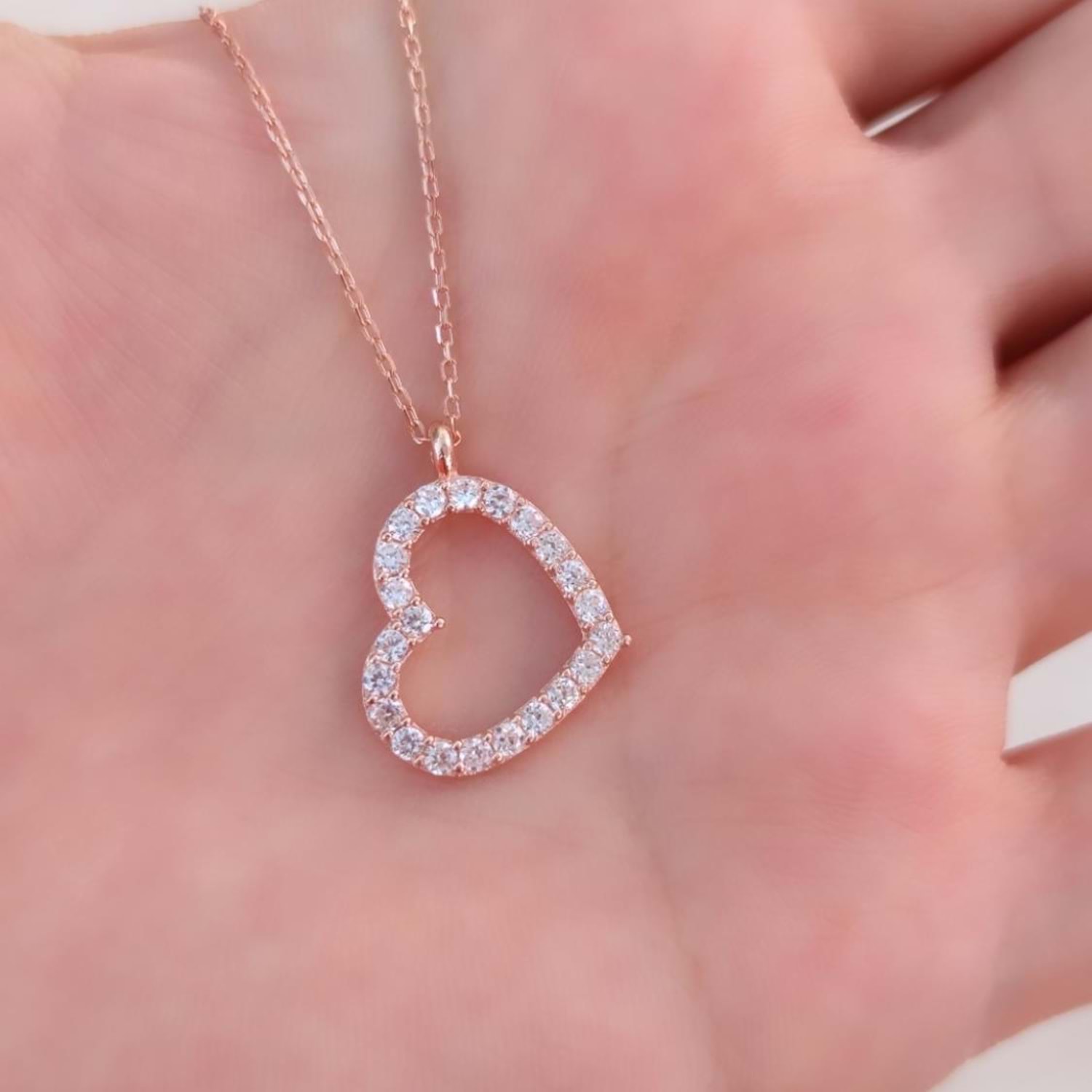 İÇİ BOŞ TAŞLI KALP GÜMÜŞ KOLYE