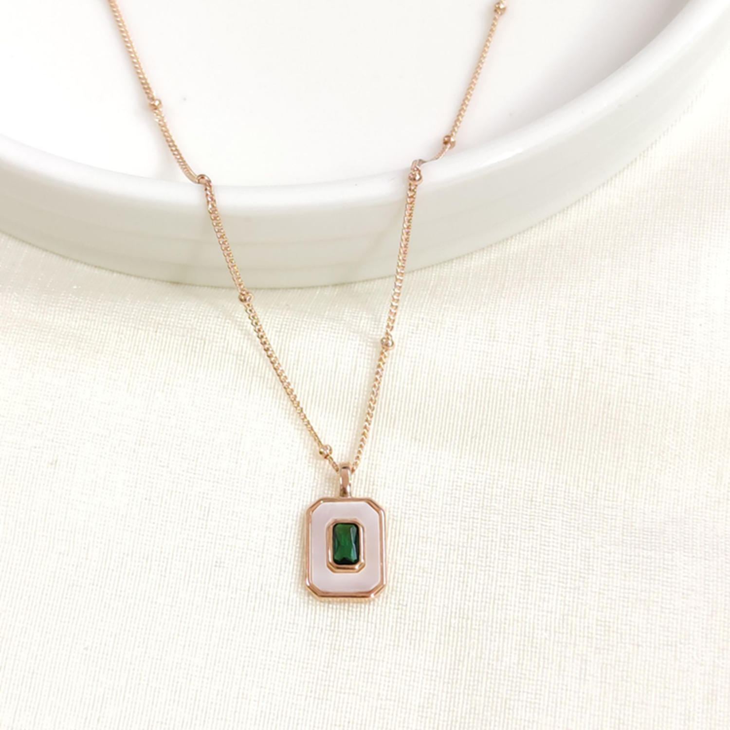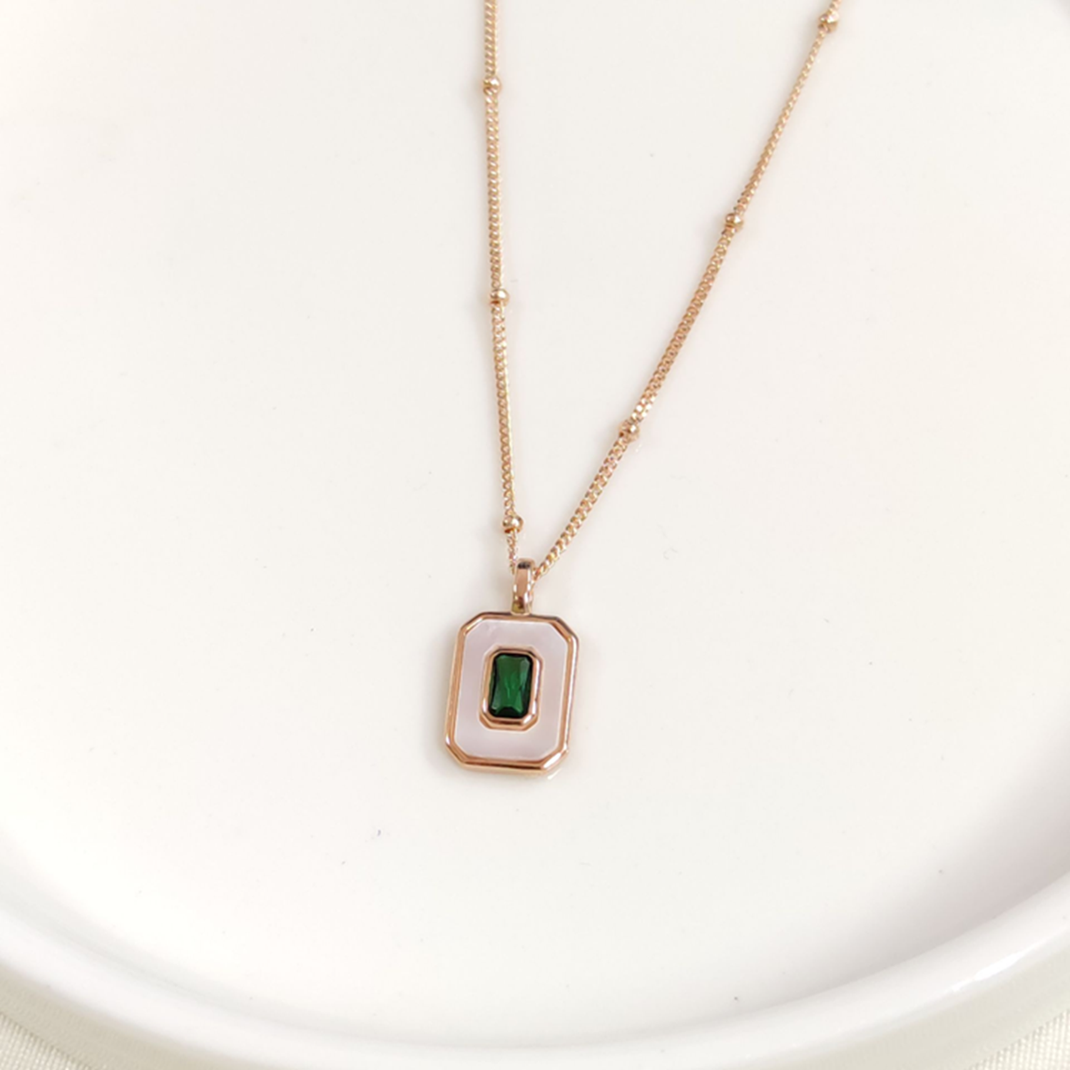 İTHAL SEDEF YEŞİL TAŞLI TOP ZİNCİRLİ GÜMÜŞ KOLYE 40+5CM