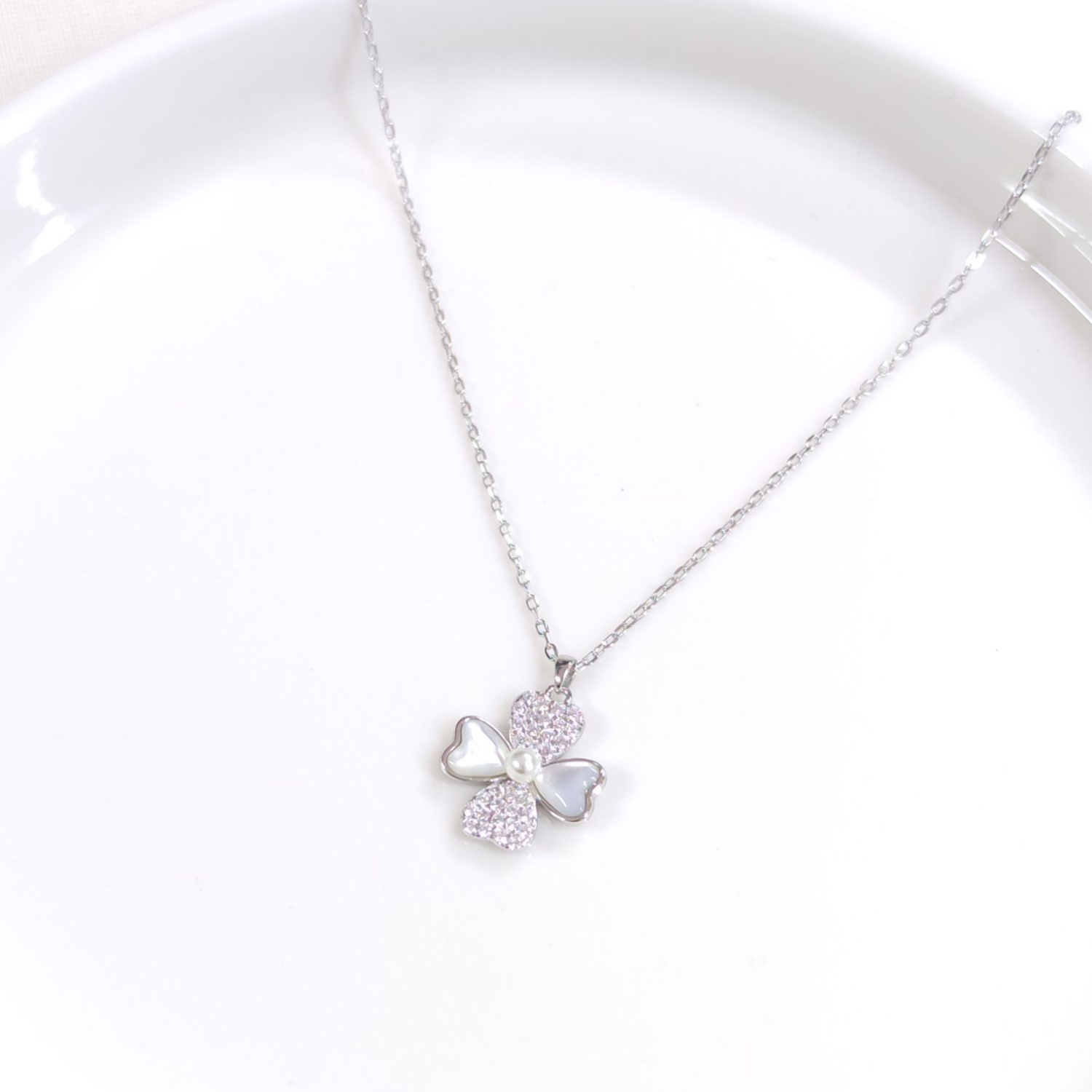 İTHAL TAŞLI SEDEF YONCA GÜMÜŞ KOLYE