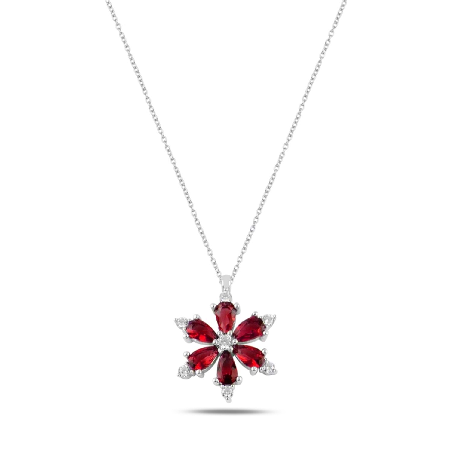 KIRMIZI TAŞLI LOTUS GÜMÜŞ KOLYE
