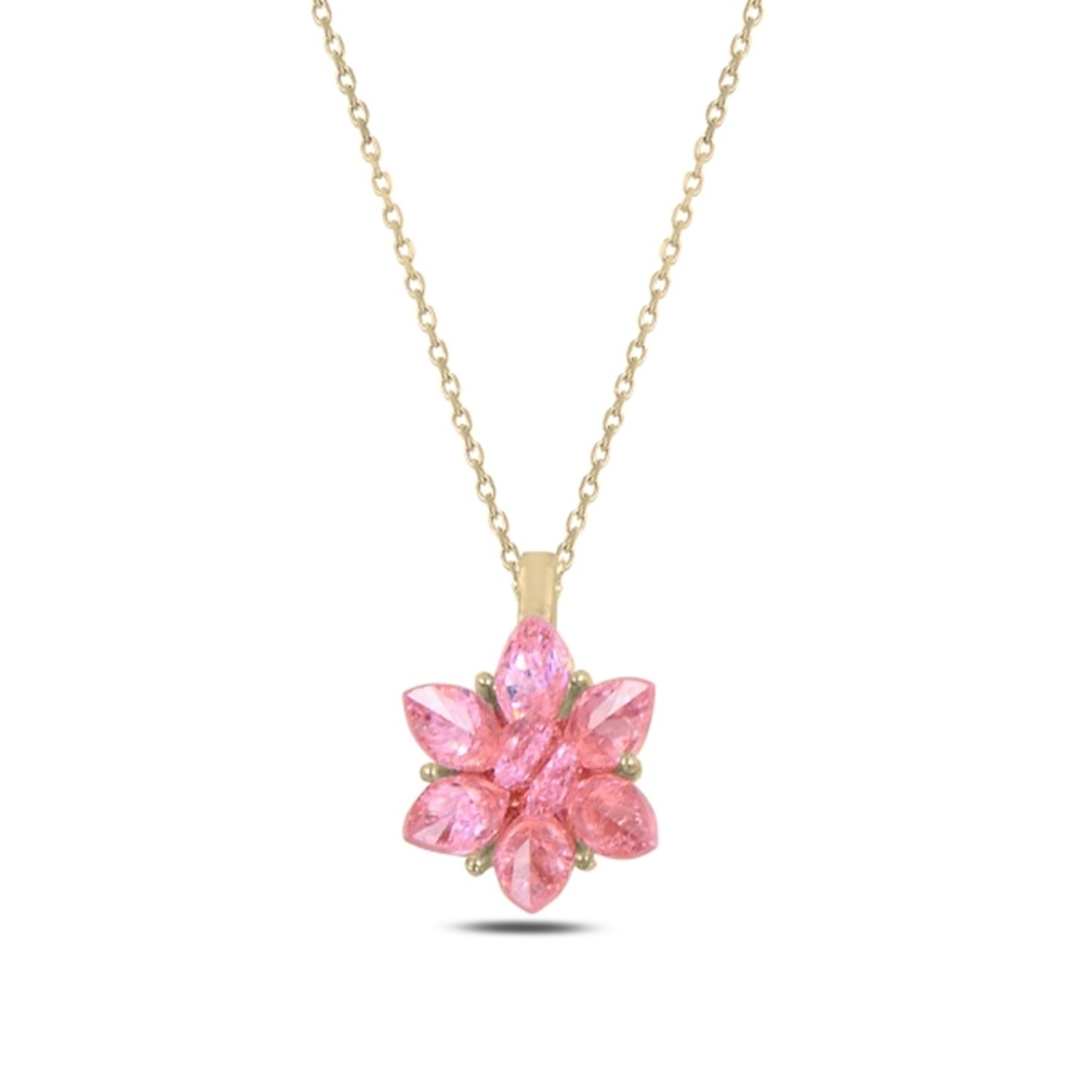 LOTUS ÇİÇEĞİ PEMBE ZİRKON GÜMÜŞ KOLYE - ALTIN SARI