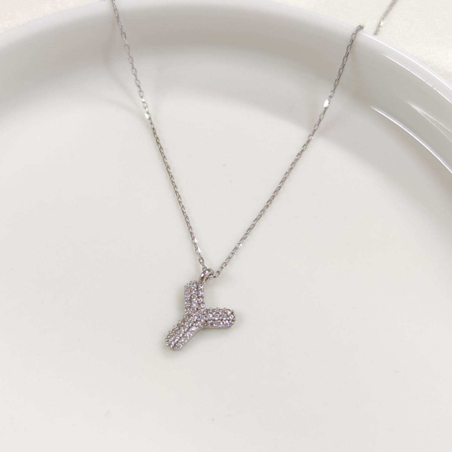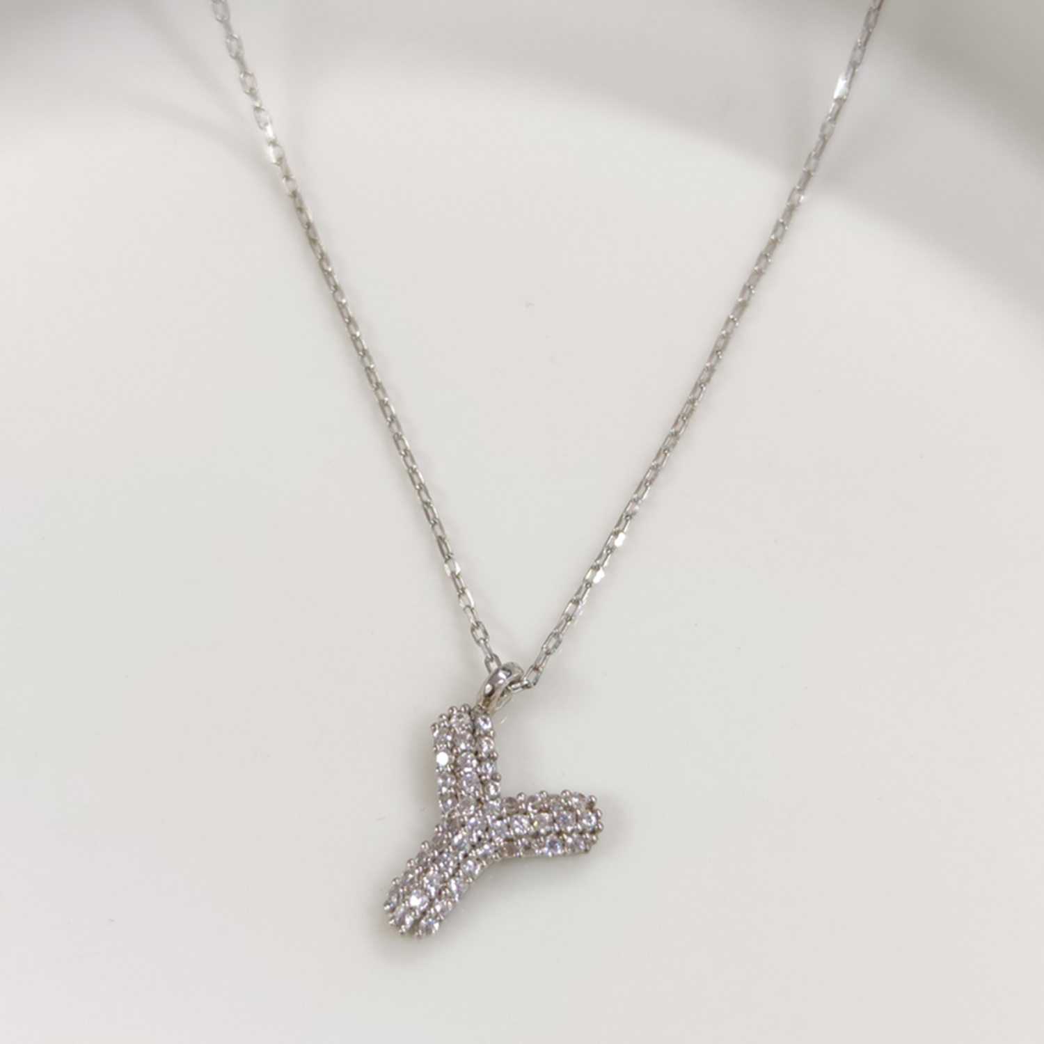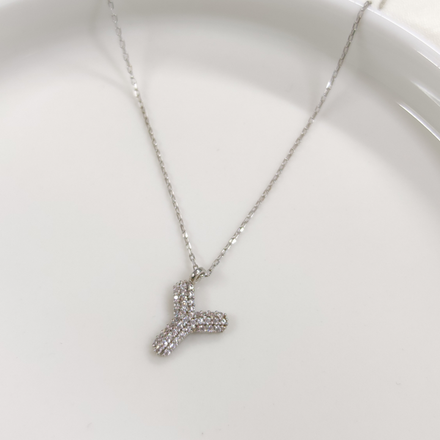 Y TAŞLI GÜMÜŞ HARF KOLYE - RODYUM BEYAZ