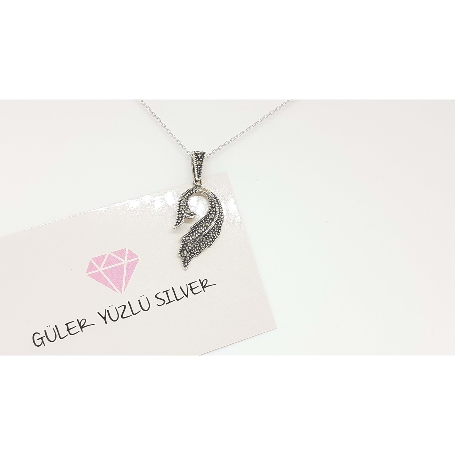 MARKAZİT TASARIM YAPRAK GÜMÜŞ KOLYE