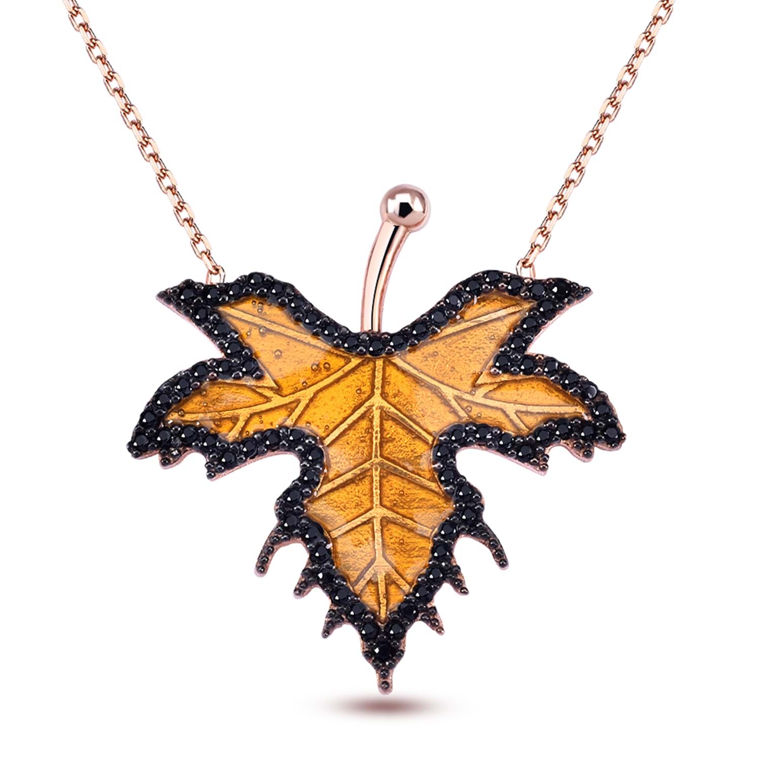 MİNELİ ÇINAR YAPRAĞI GÜMÜŞ KOLYE