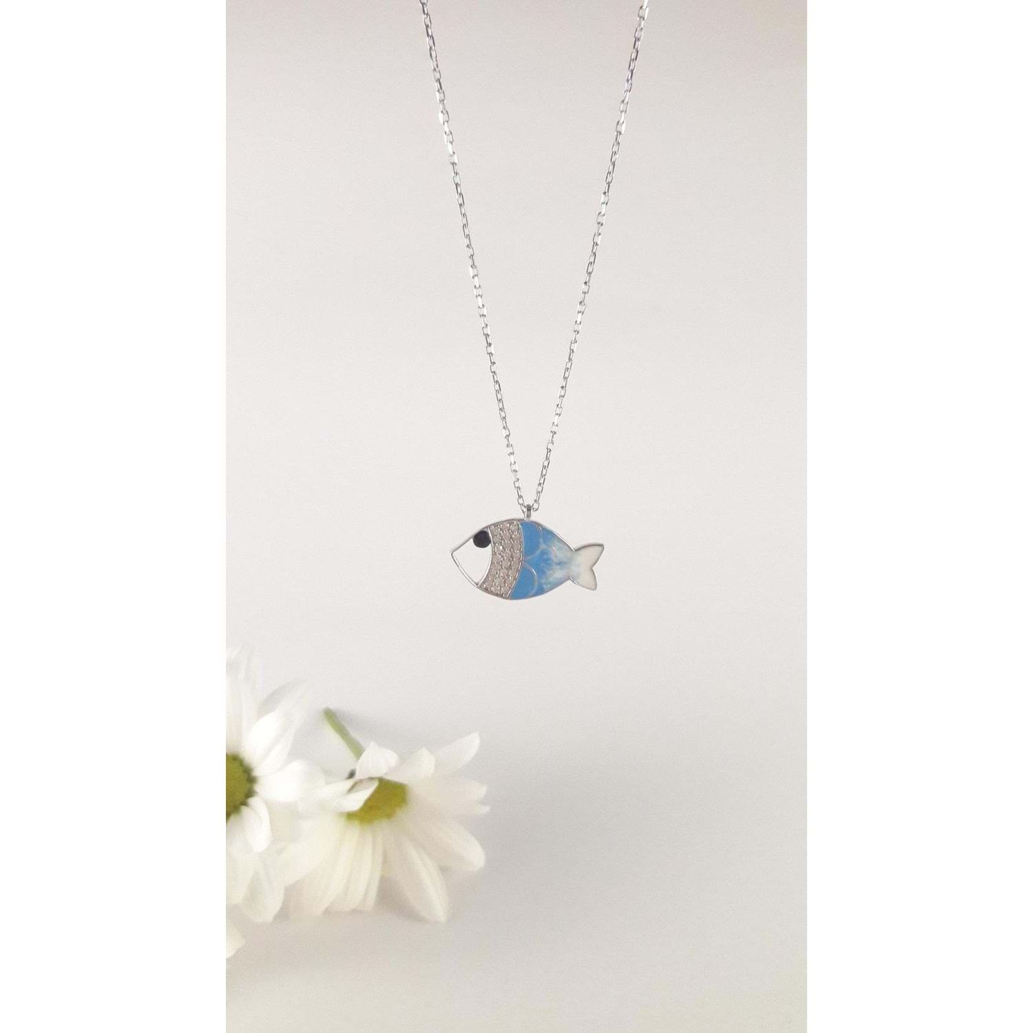 MİNELİ MAVİ BALIK GÜMÜŞ KOLYE