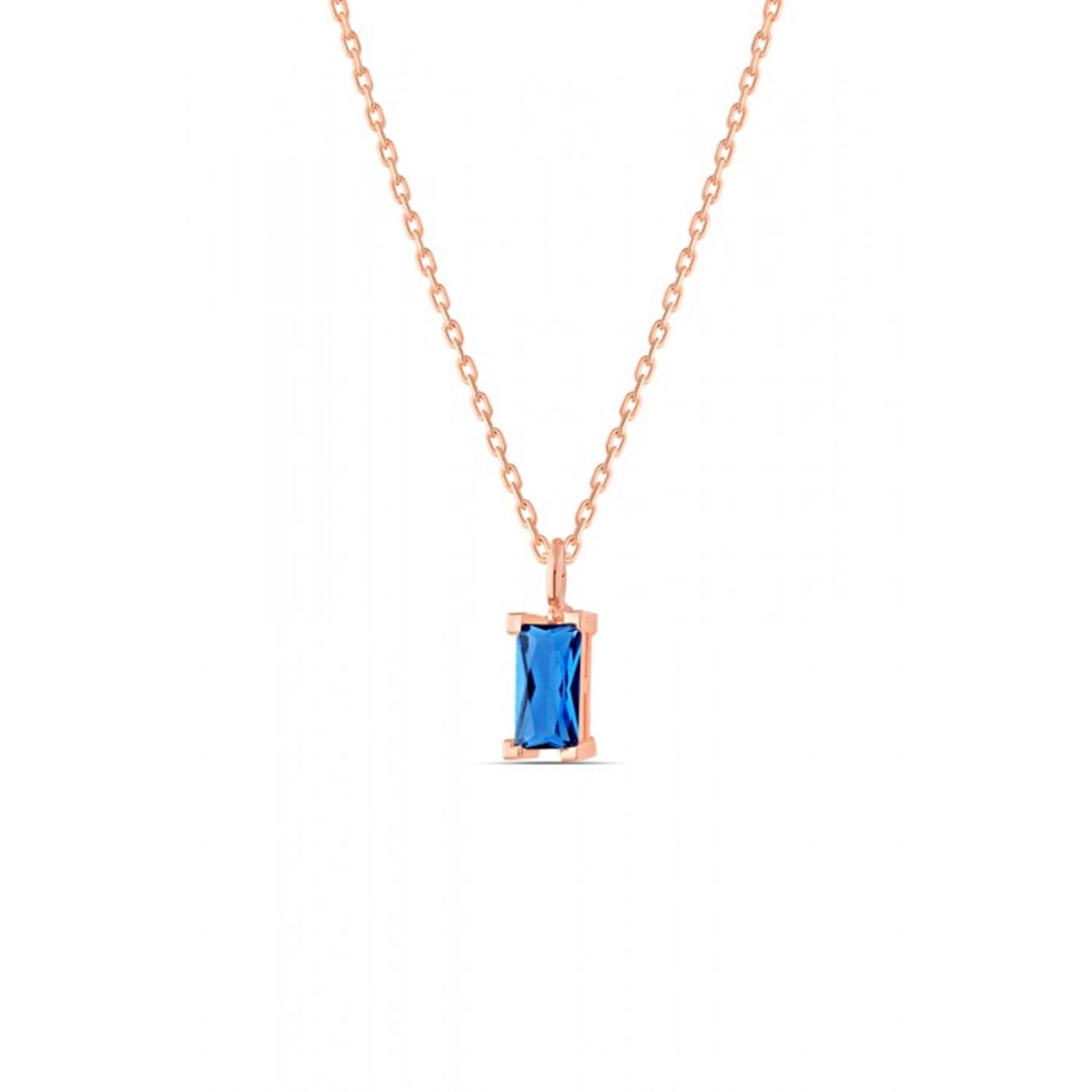 MİNİ MAVİ BAGET TAŞ GÜMÜŞ KOLYE - ROSE ALTIN KAPLAMA (BAKIR)