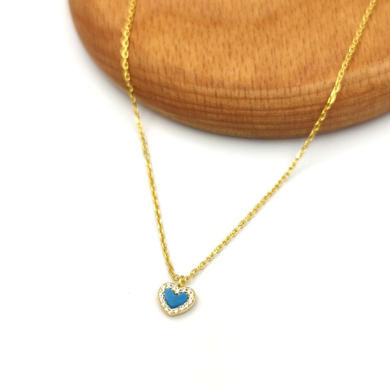 MİNİ MAVİ KALP GÜMÜŞ KOLYE