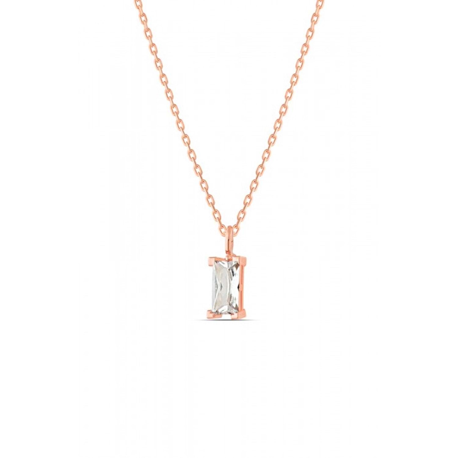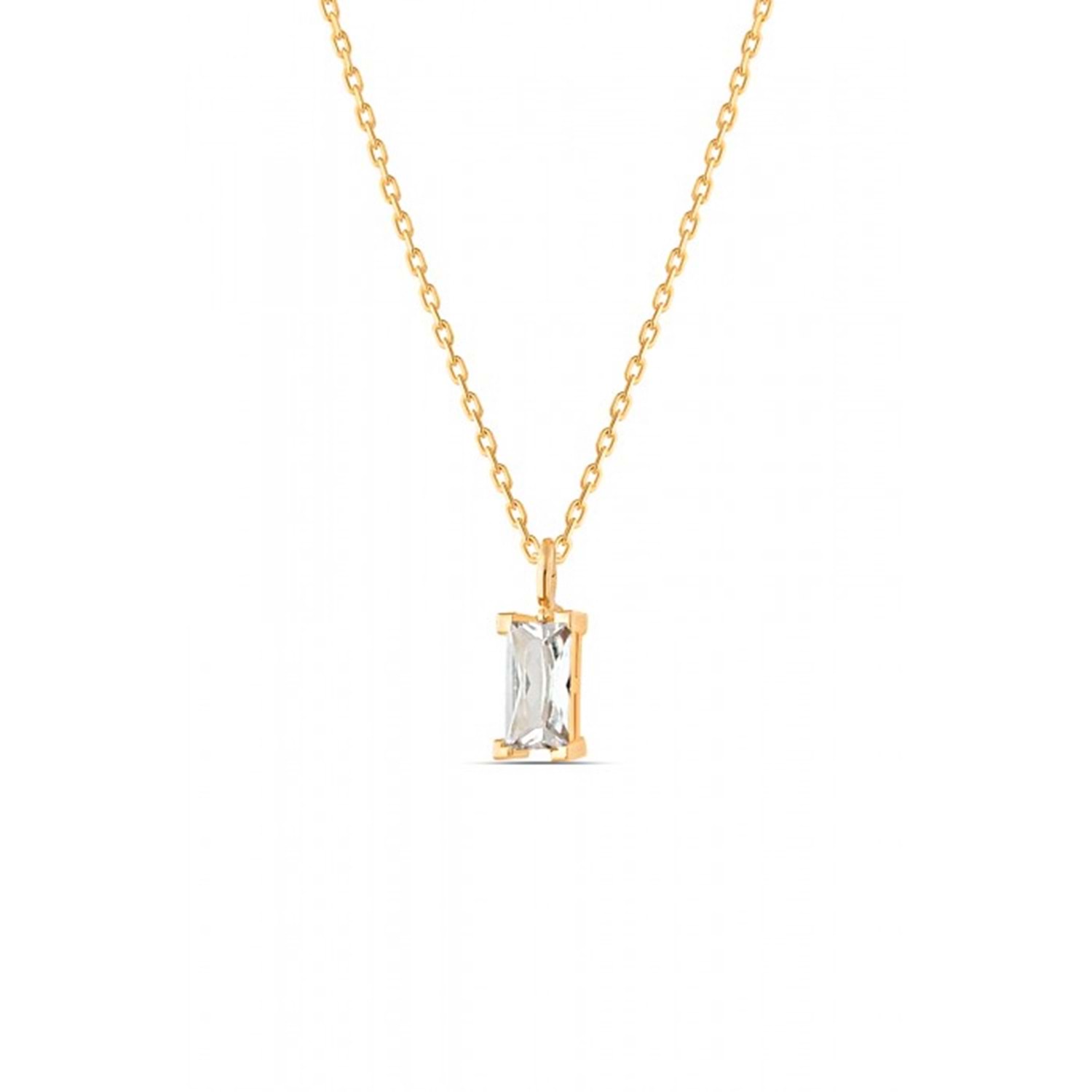 MİNİ ZİRKON TAŞLI BAGET TAŞ GÜMÜŞ KOLYE - ALTIN KAPLAMA (SARI)