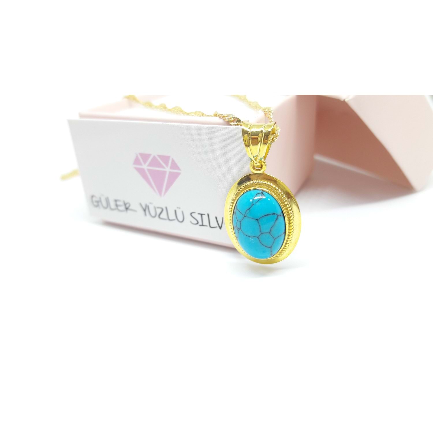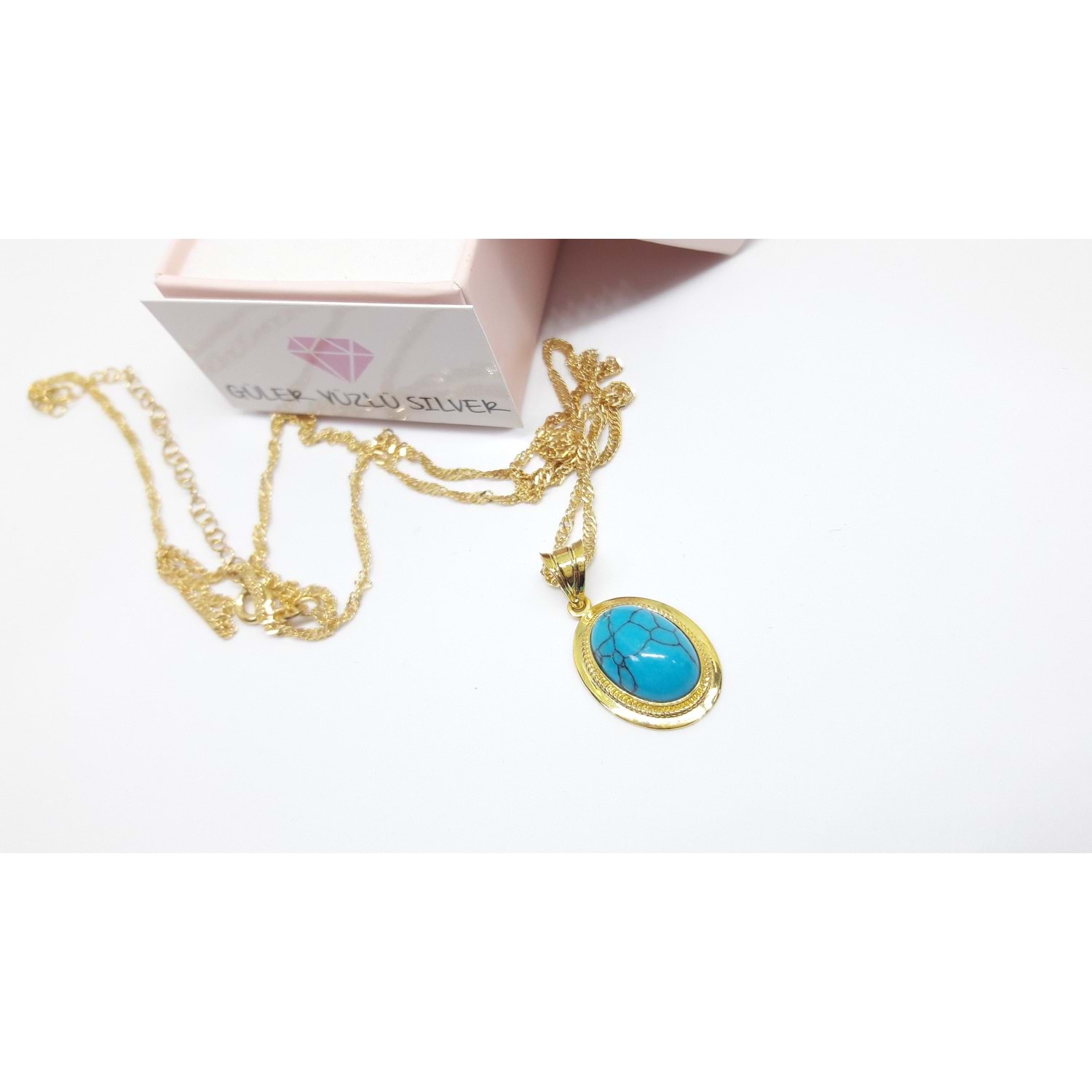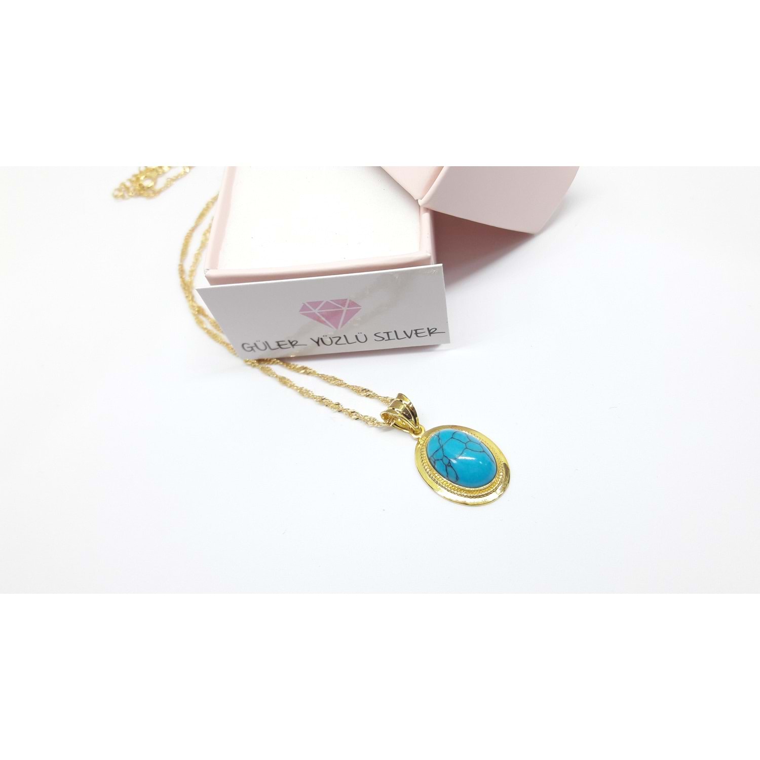 OVAL TURKUAZ TAŞLI ALTIN KAPLAMA GÜMÜŞ KOLYE