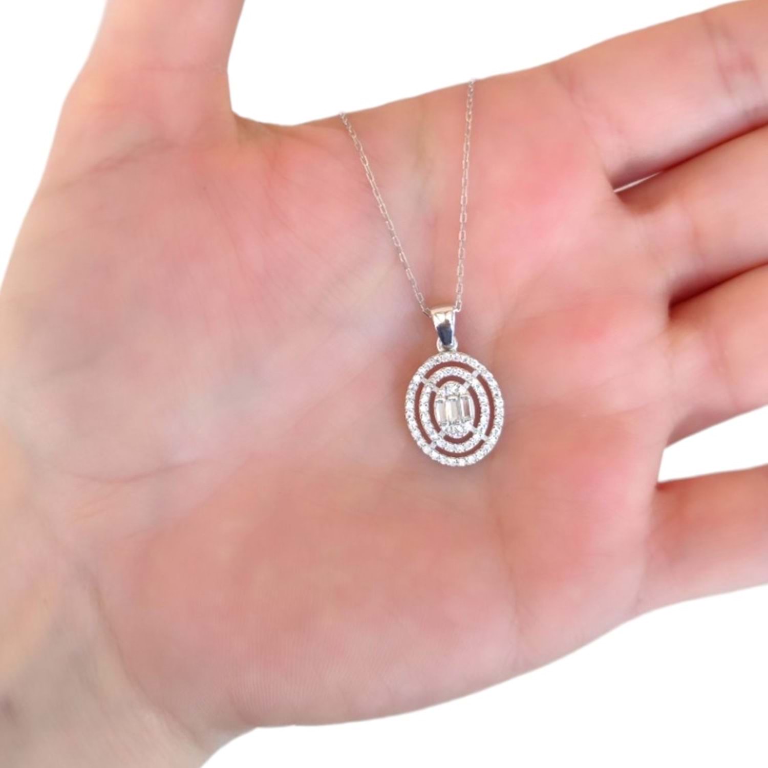 PIRLANTA MONTÜR BAGET OVAL GÜMÜŞ KOLYE - RODYUM BEYAZ