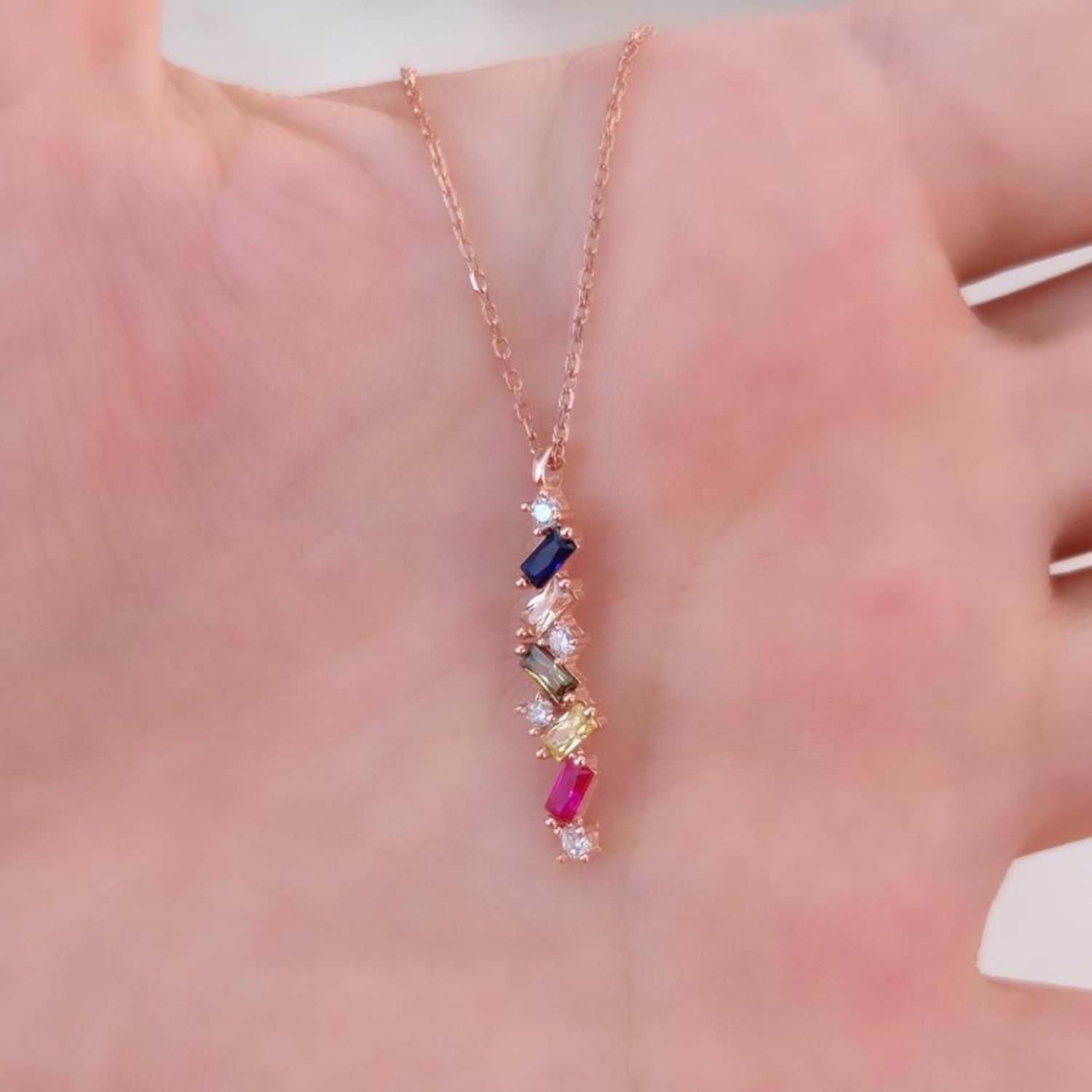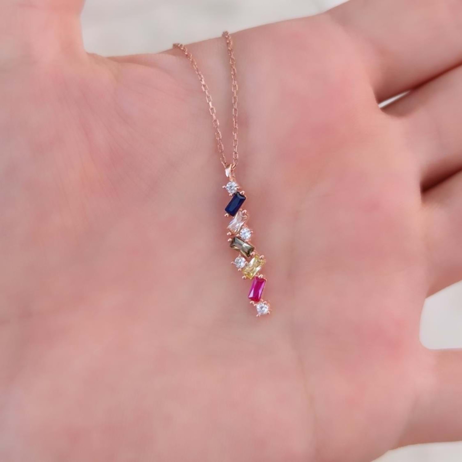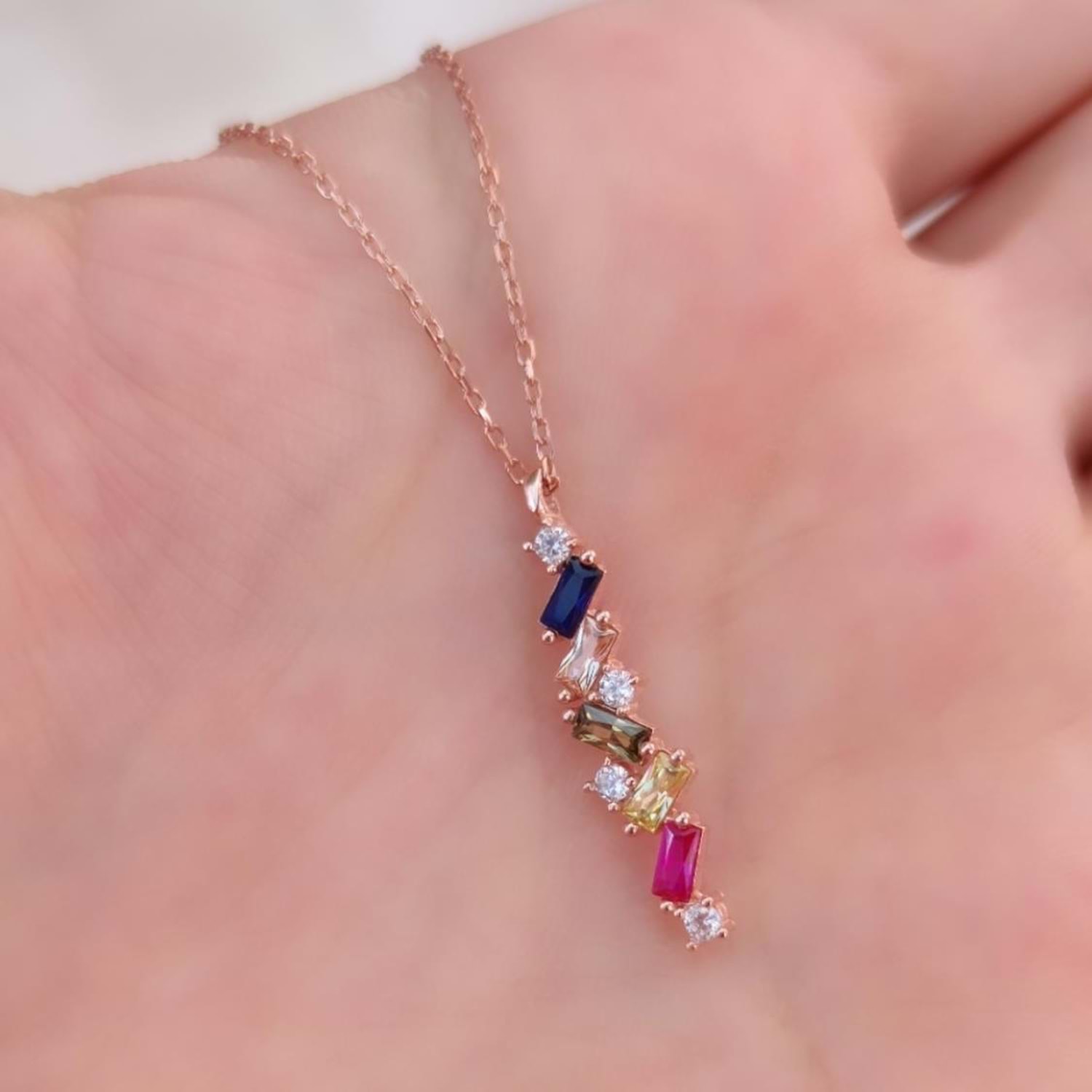 RENKLİ BAGET SU YOLU GÜMÜŞ KOLYE