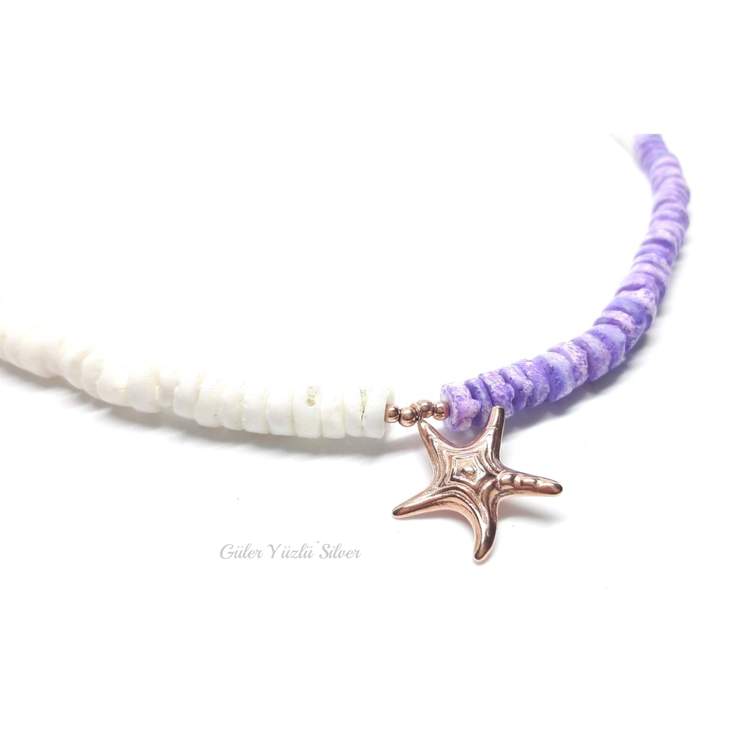 RENKLİ BONCUK MOR DENİZ YILDIZI GÜMÜŞ KOLYE