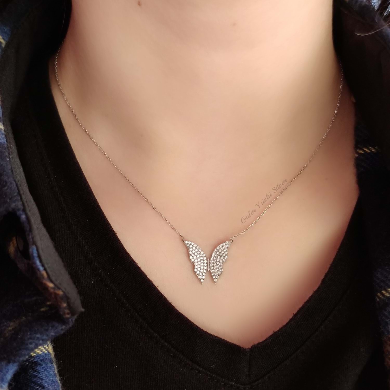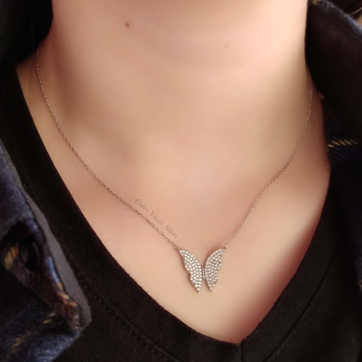 RODYUM KAPLAMA KELEBEK GÜMÜŞ KOLYE