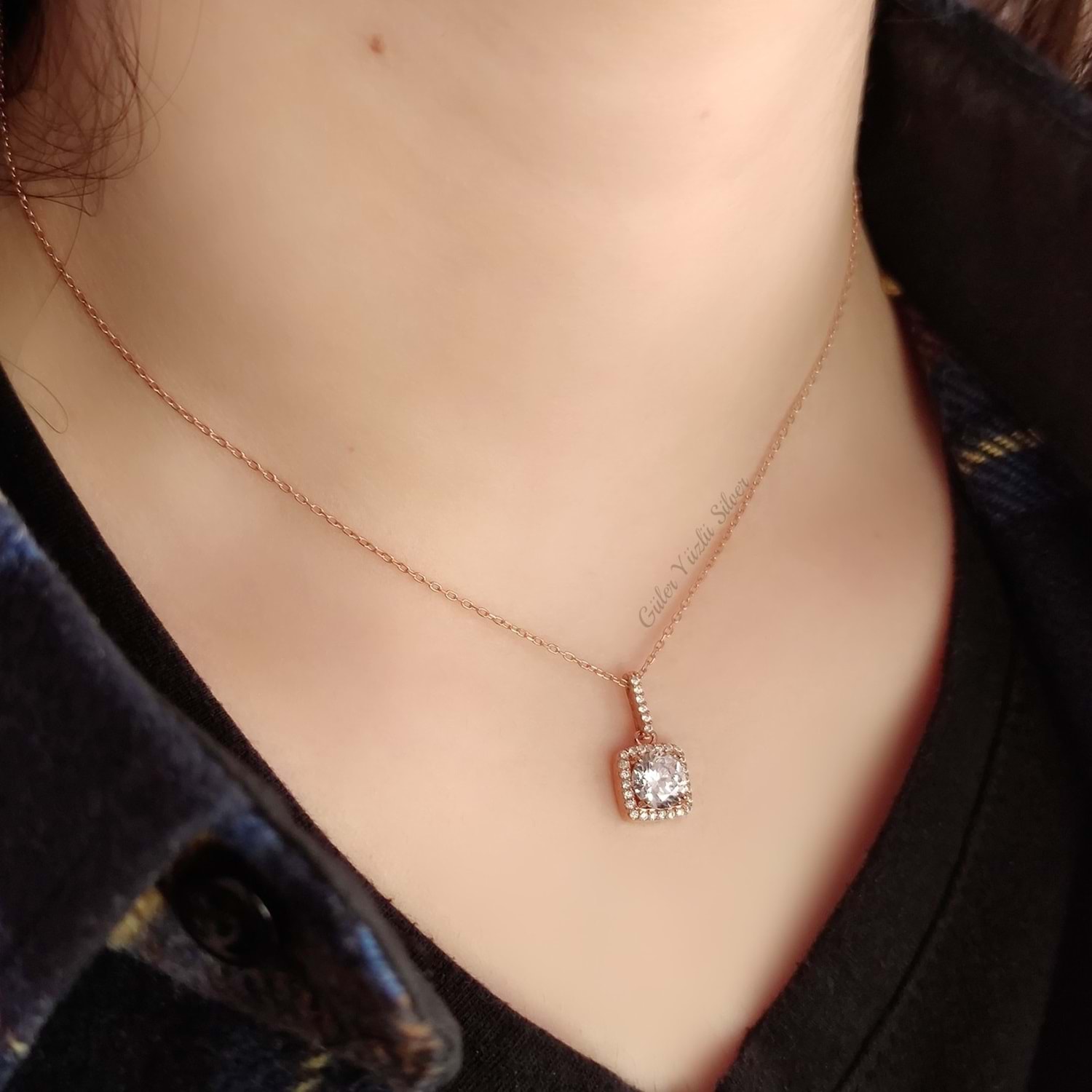 ROSE KARE PIRLANTA MONTÜR GÜMÜŞ KOLYE