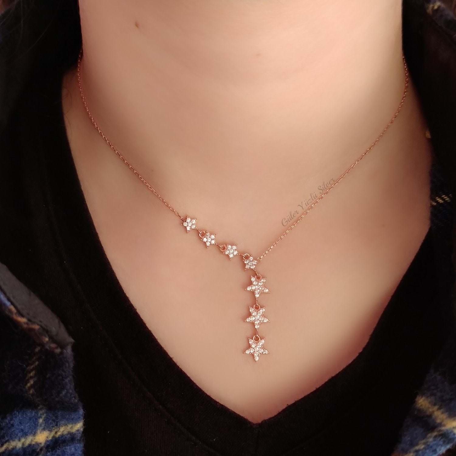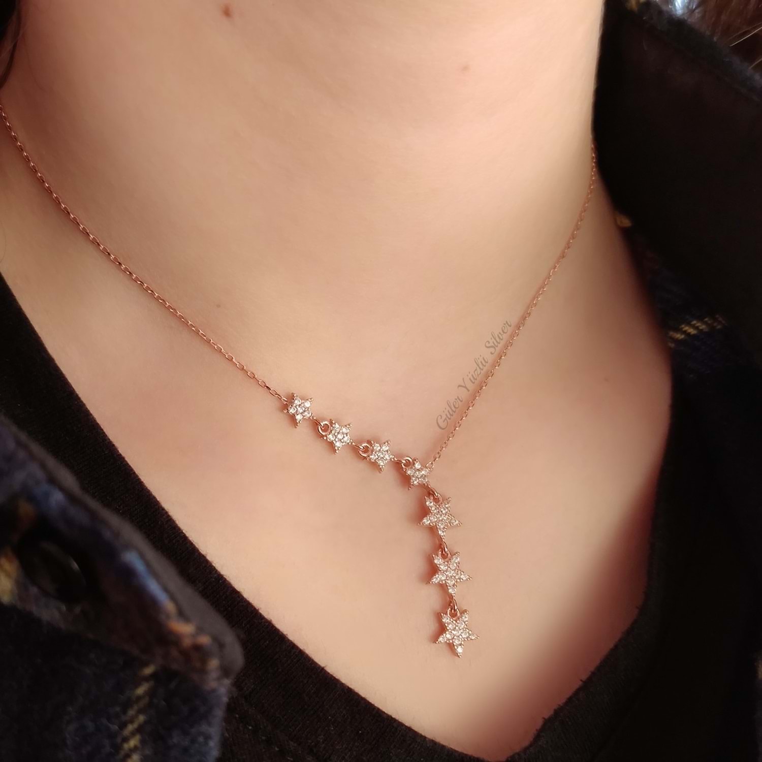 ROSE SIRALI YILDIZ GÜMÜŞ KOLYE