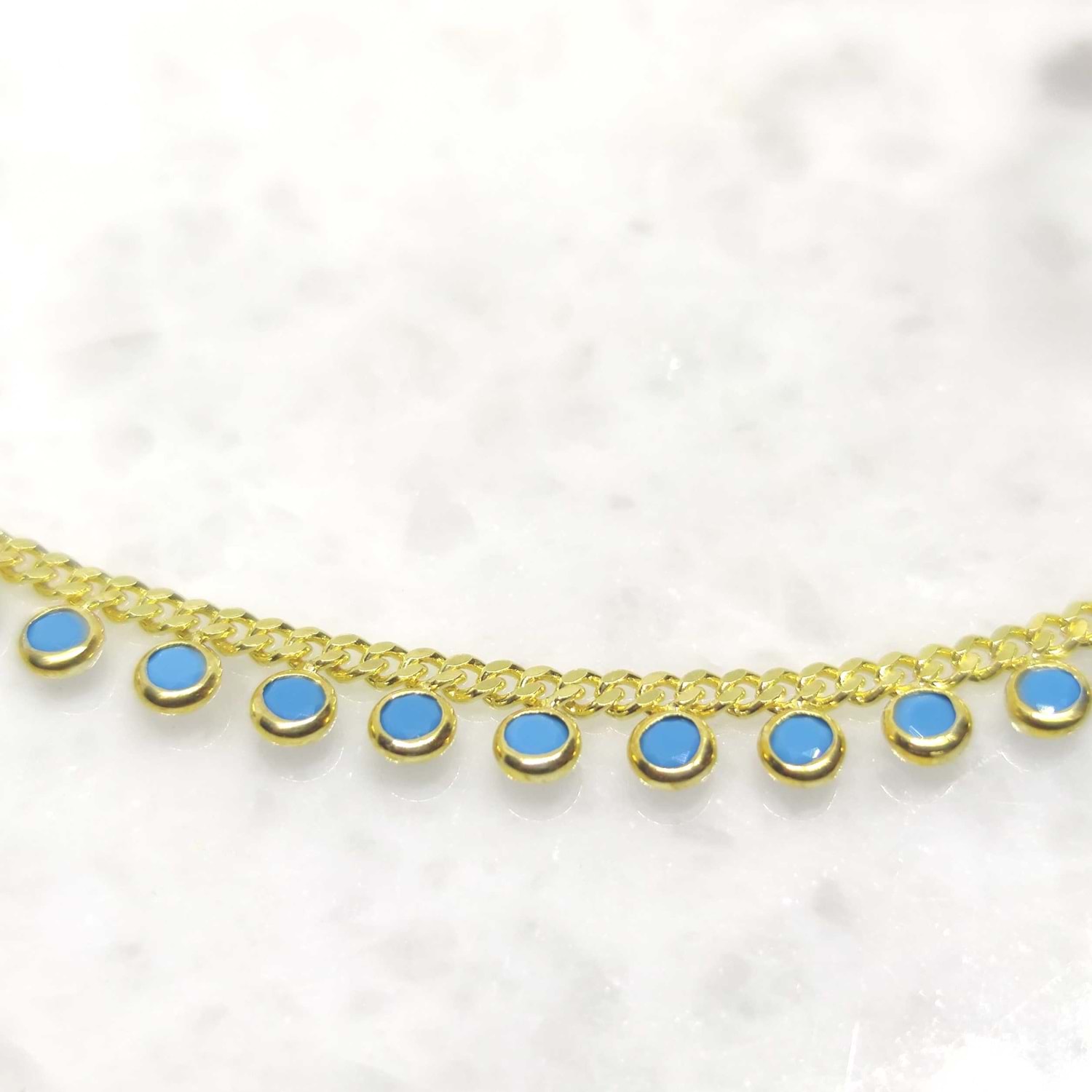 925 AYAR GÜMÜŞ TURKUAZ TAŞLI SIRALI SALLANTILI GURMET ZİNCİRLİ GÜMÜŞ KOLYE KİMYASAL ÜRÜNLER İLE TEMAS EDİLMEMELİDİR. 45 CM +5 CM EK UZATMA HALKASI ORT GRAM : 6,55 gr