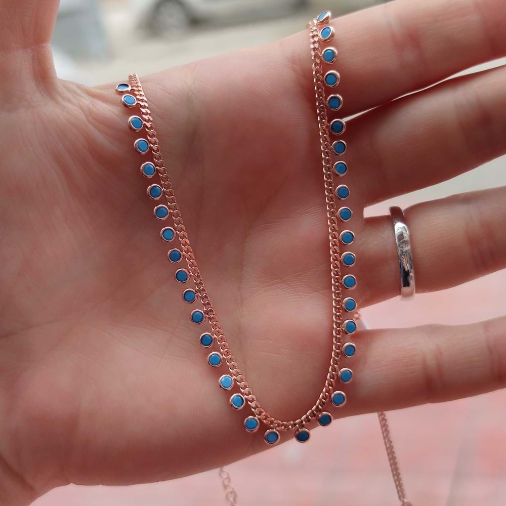 925 AYAR GÜMÜŞ TURKUAZ TAŞLI SIRALI SALLANTILI GURMET ZİNCİRLİ GÜMÜŞ KOLYE KİMYASAL ÜRÜNLER İLE TEMAS EDİLMEMELİDİR. 45 CM +5 CM EK UZATMA HALKASI ORT GRAM : 6,55 gr