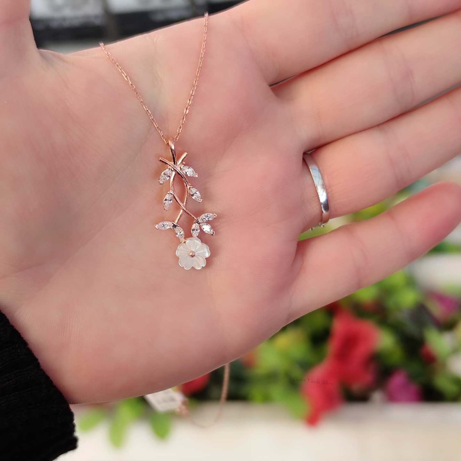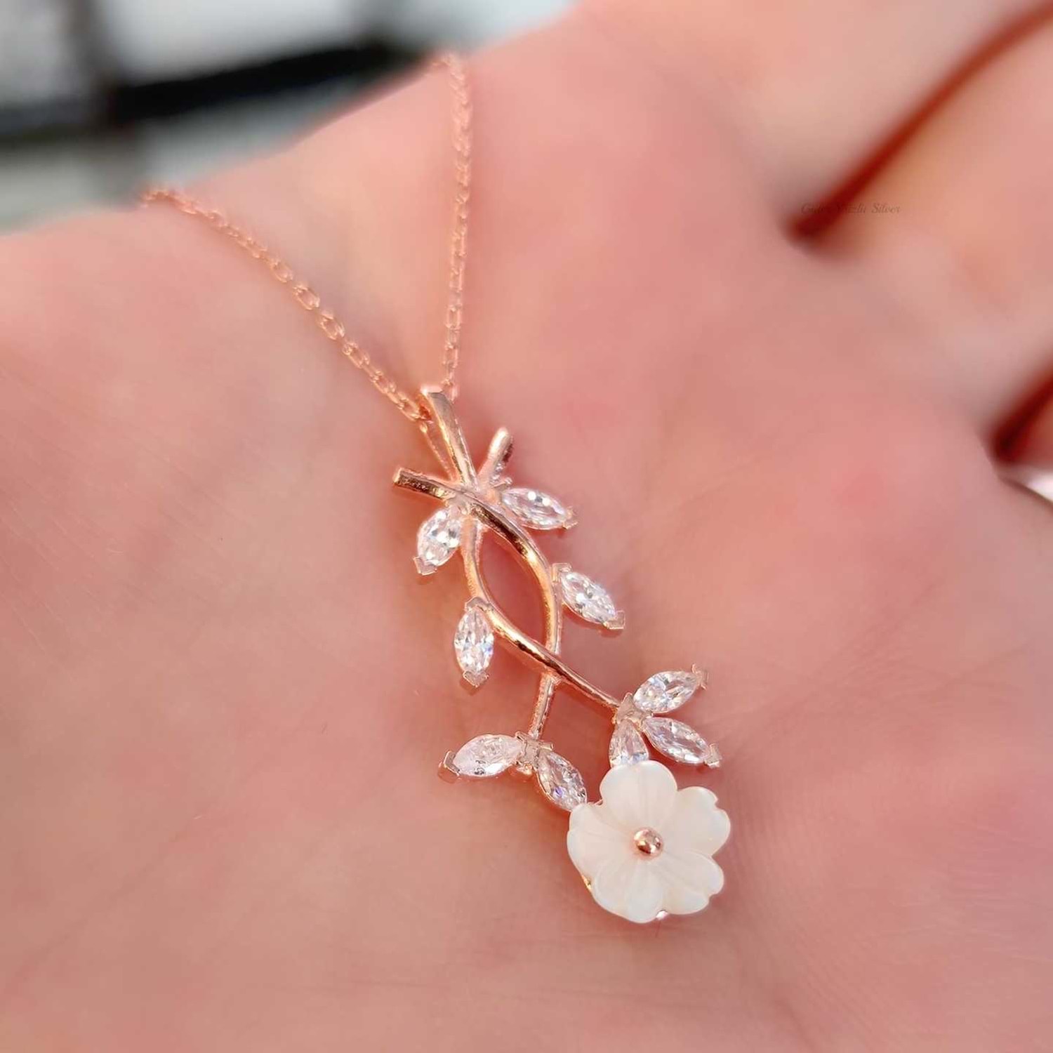 925 AYAR GÜMÜŞ ÇİÇEK KISMI ORJİNAL SEDEFTEN ÜRETİLMİŞTİR kolye ucu uzunluğu : 3 cm dir. MANOLYA ÇİÇEK KOLYE