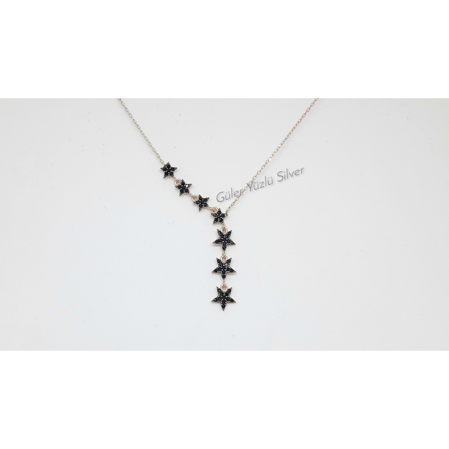 SİYAH ZİRKON TAŞLI SIRALI YILDIZ GÜMÜŞ KOLYE