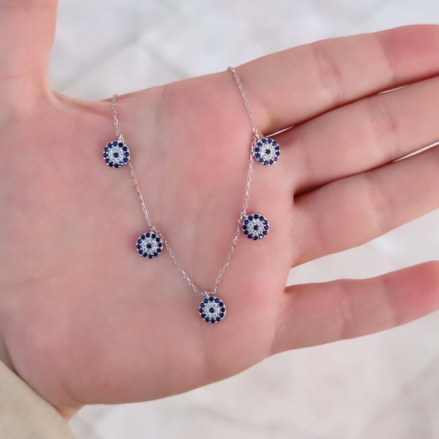 SOSYETE GÖZÜ NAZAR ŞANS GÜMÜŞ KOLYE - RODYUM BEYAZ
