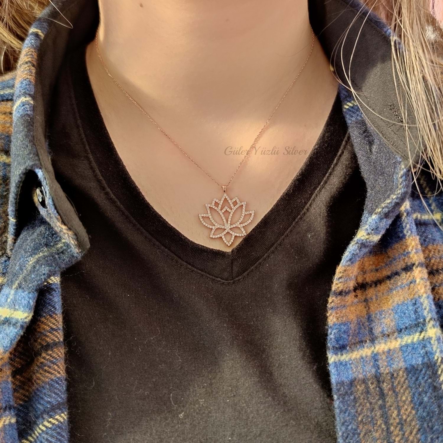 TAŞLI LOTUS GÜMÜŞ KOLYE