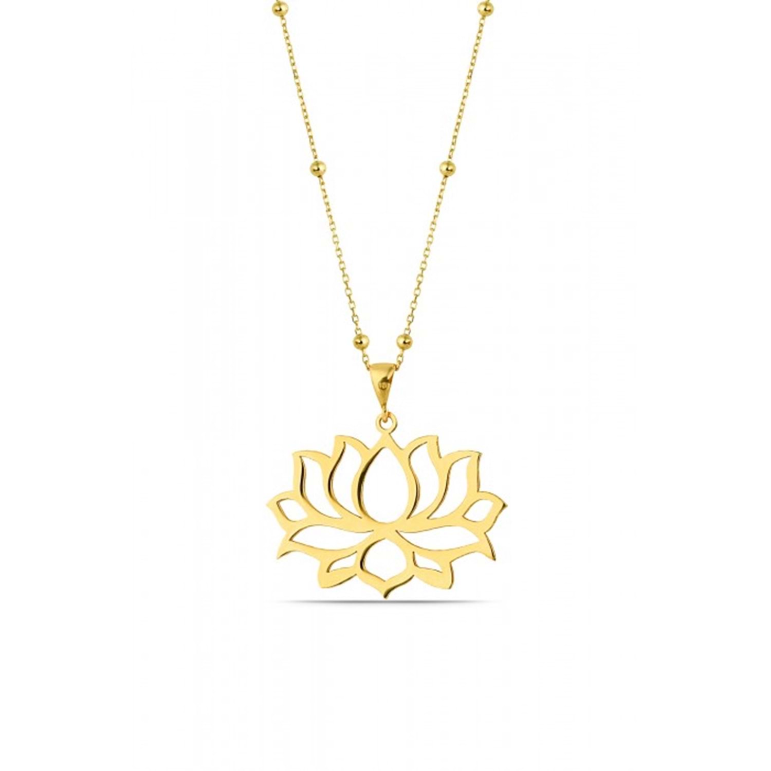 TOP ZİNCİRLİ LOTUS ÇİÇEĞİ GÜMÜŞ KOLYE - ALTIN SARI