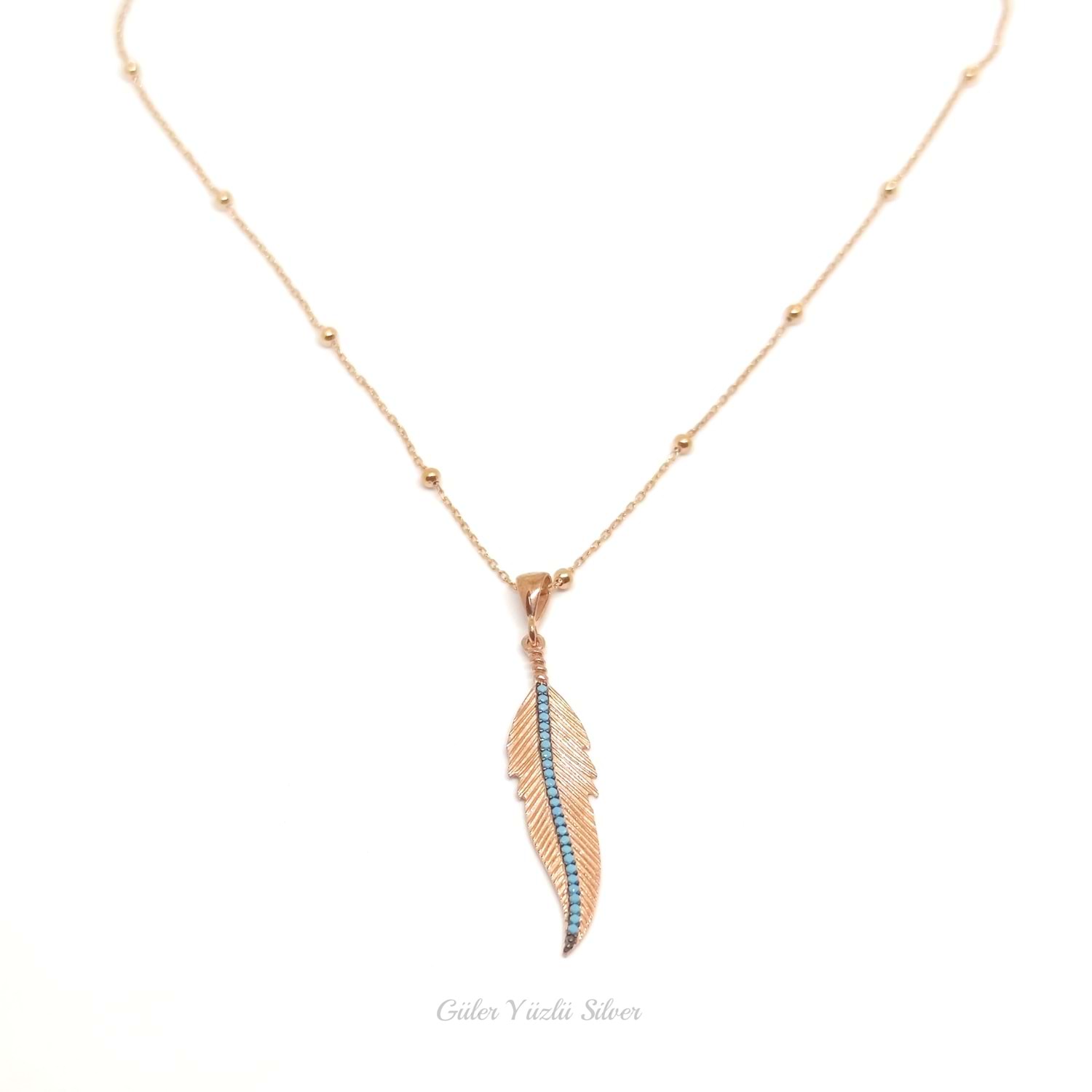 TURKUAZ TAŞLI TOP ZİNCİRLİ TÜY GÜMÜŞ KOLYE