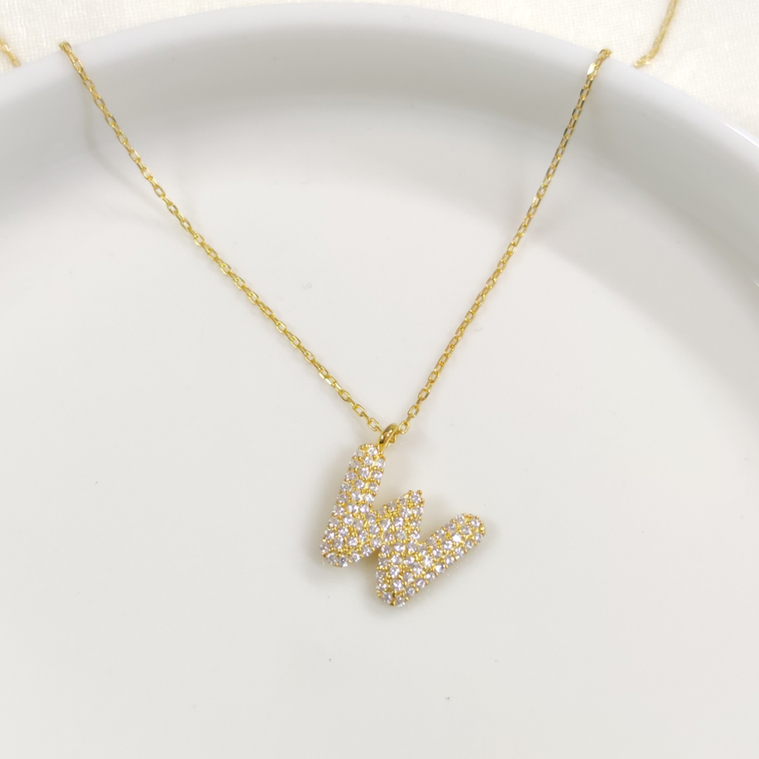 W TAŞLI GÜMÜŞ HARF KOLYE