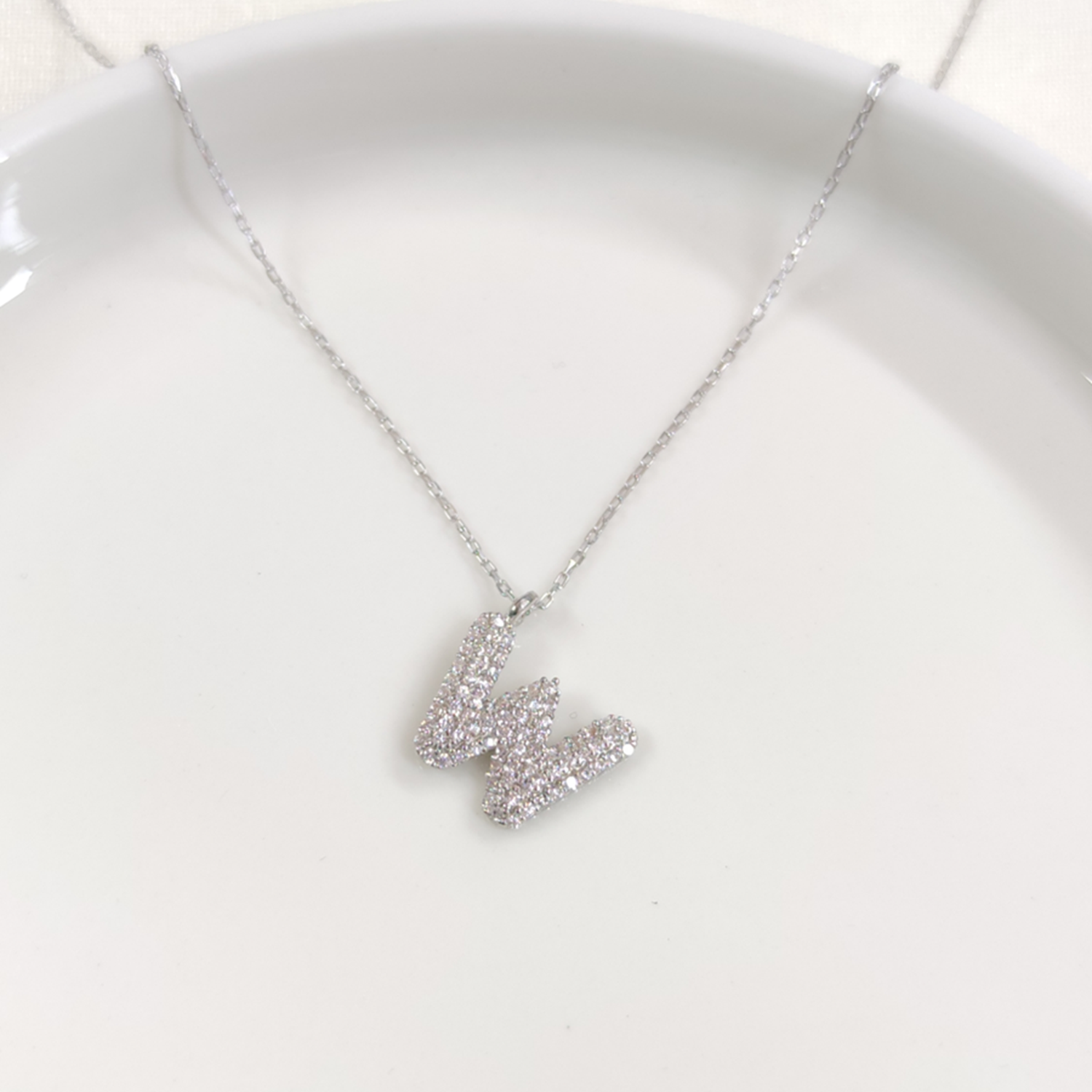 W TAŞLI GÜMÜŞ HARF KOLYE - RODYUM BEYAZ